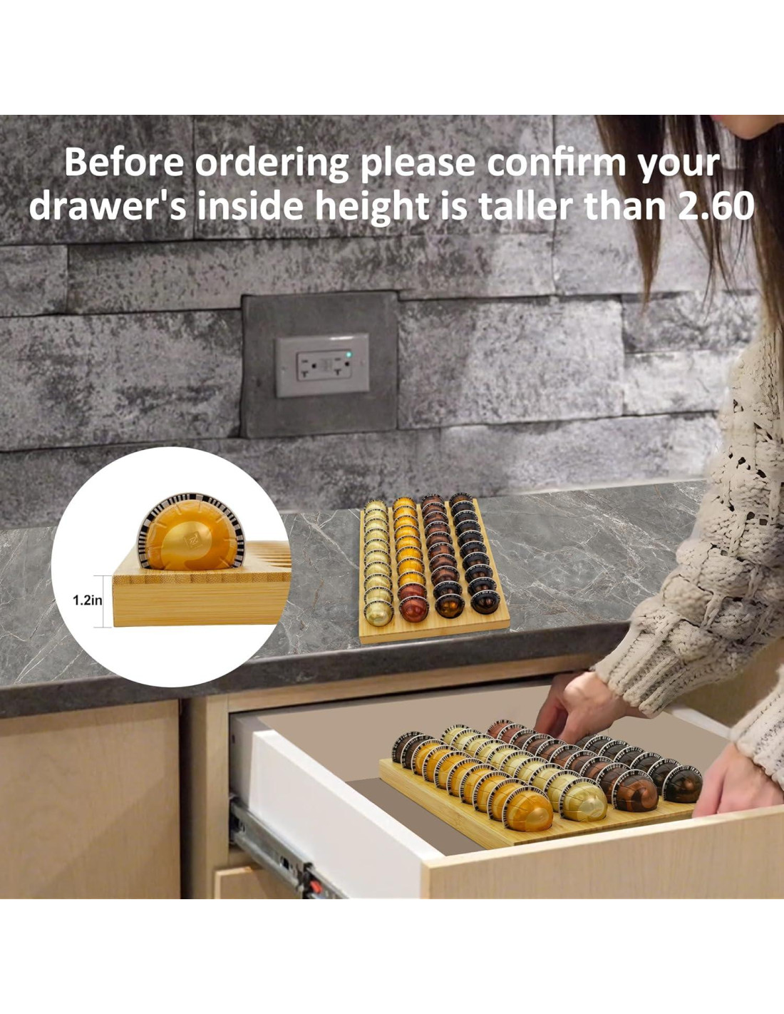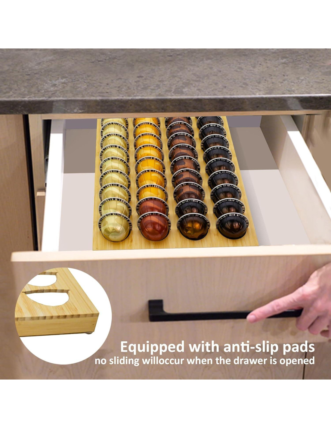 - ORGANIZADOR DE CAJÓN DE ALMACENAMIENTO ELEGANTE: Aprovecha al máximo el espacio de tu cajón, se adapta a una variedad de cajones estándar, también te proporcionamos alfombrillas antideslizantes, para que el producto no se deslice al abrir y cerrar el cajón, manteniendo tus cápsulas ordenadas y organizadas, un accesorio perfecto para cápsulas de café