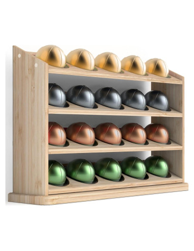 - El Organizador de Bambú Gevoli para cápsulas Vertuo ofrece una solución conveniente para sostener y exhibir tus cápsulas de café.