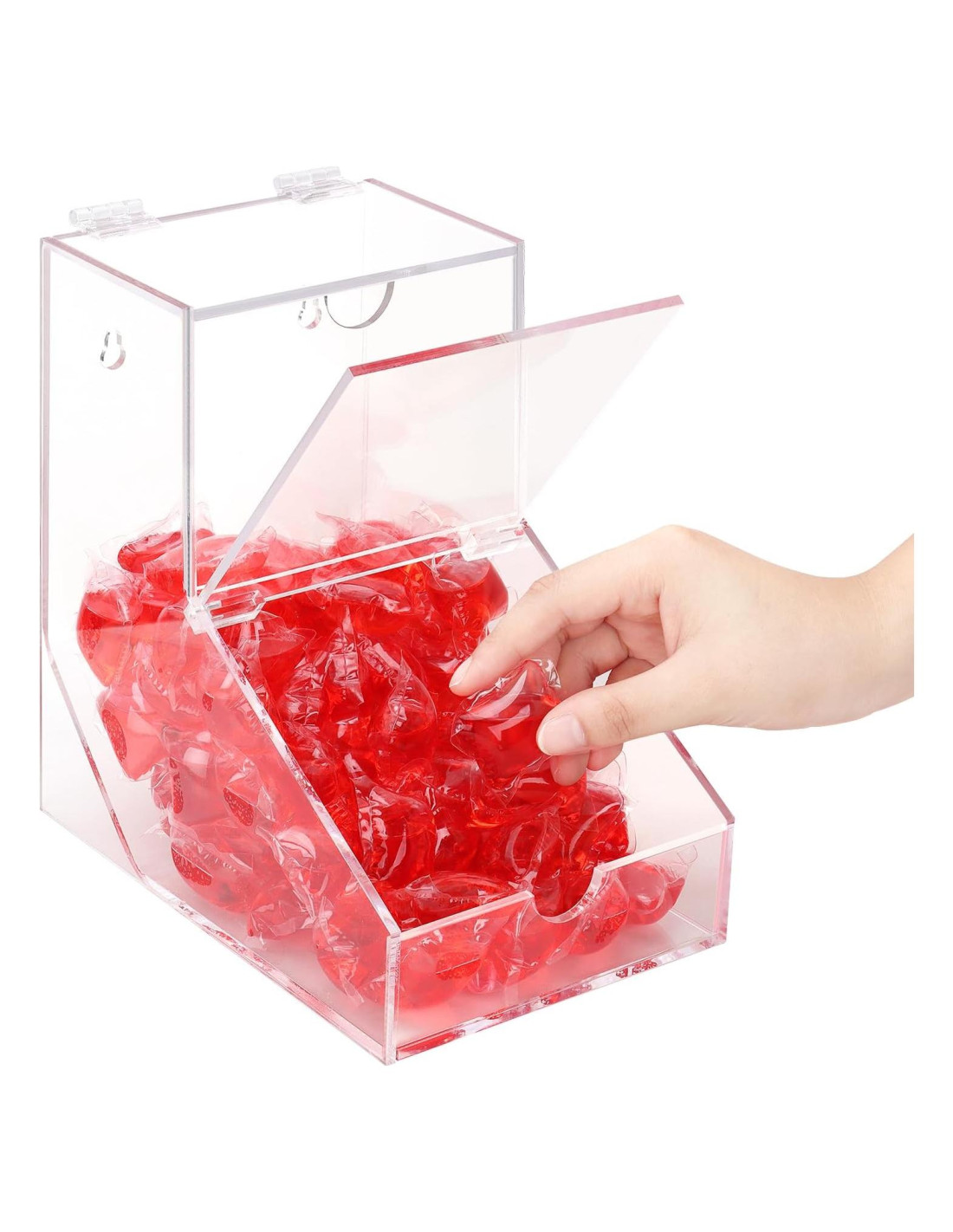 - Dispensador de cápsulas de lavandería: Reemplace el empaquetado antiestético con nuestro contenedor de cápsulas de lavandería de acrílico transparente, que alberga ordenadamente elementos esenciales como cápsulas de lavandería y pelotas de secadora. La construcción transparente proporciona una vista sin obstrucciones del contenido, facilitando la identificación de cuándo es el momento de reabastecer.