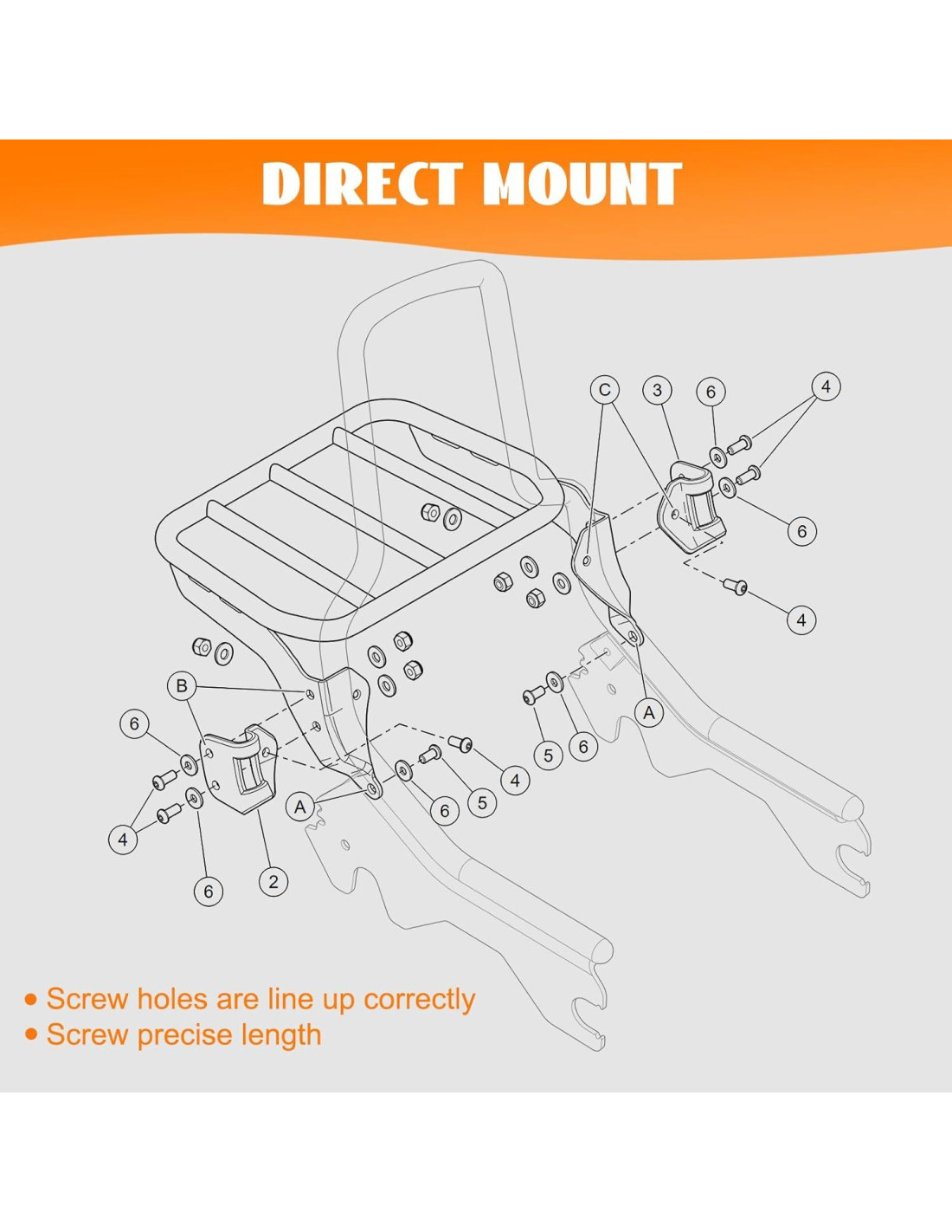 - Fácil de instalar: Este portaequipajes de respaldo sissy bar se atornilla directamente a tu barra sissy holdfast. La longitud del tornillo es precisa. La instalación directa no requiere modificaciones ni perforaciones. Paquete incluido: 1*Portaequipajes Deportivo, 1*Juego de hardware de montaje, 1*Instrucciones de instalación