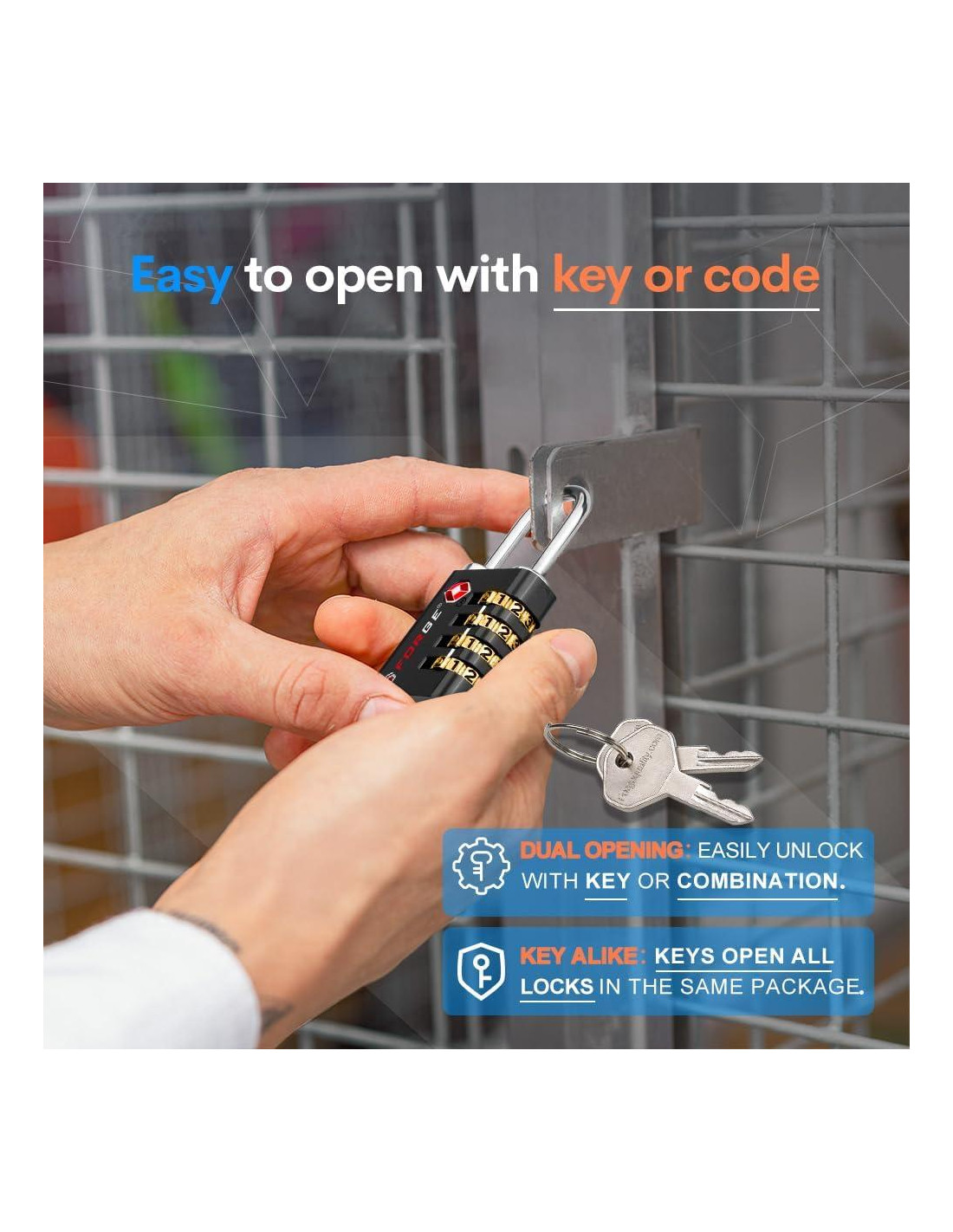 - Grillete Extendido y Configuración Sin Esfuerzo: Nuestras cerraduras TSA cuentan con un grillete más largo para todos los casos, lo que las hace perfectas para manos cansadas, incluidas aquellas con artritis. El mecanismo de configuración sin esfuerzo asegura un proceso de configuración de código suave, eliminando la necesidad de giros difíciles y reduciendo las posibilidades de configurar el código incorrectamente. Disfruta de una experiencia fluida y fácil de usar con nuestras cerraduras tsa.