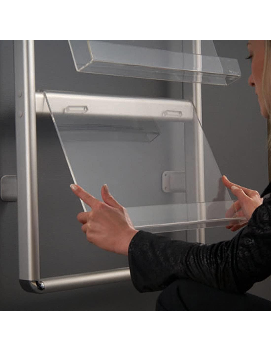 - VERSÁTIL: El diseño práctico y único de este soporte de folletos es ideal para bancos, tiendas, galerías, centros de información, entre otros lugares. Excelente manera de captar la atención cuando deseas exhibir anuncios de marketing. Con su aspecto elegante y contemporáneo, el soporte de revistas para ferias comerciales seguramente será una cálida bienvenida en tu stand para tus visitantes.