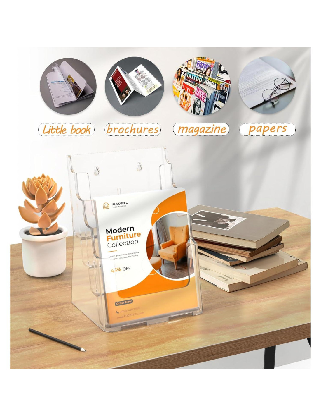- GARANTÍA DE CALIDAD FUCDTEFC es un fabricante profesional de soportes de folletos acrílicos montados en mesa y pared. No importa si tienes alguna pregunta sobre este soporte de exhibición de folletos de 4 capas, por favor contáctanos, seguramente te daremos una respuesta satisfactoria.