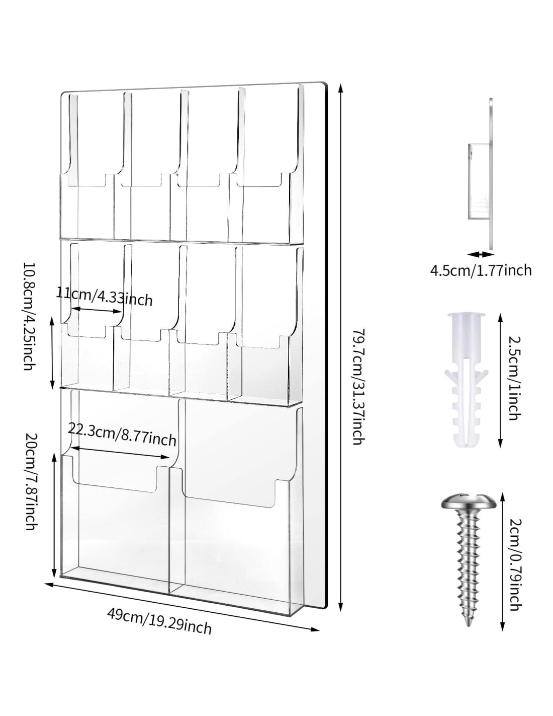 - Información de Cantidad y Tamaño: puedes obtener 1 pieza de soporte de folletos montado en la pared en este paquete, mide aproximadamente 31.37 x 19.2 x 1.77 pulgadas (79.7 x 49 x 4.5 cm), el tamaño de los bolsillos grandes es aproximadamente 8.77 x 7.87 x 1.77 pulgadas (22.3 x 20 x 4.5 cm) y los bolsillos pequeños son aproximadamente 4.33 x 4.25 x 1.77 pulgadas (11 x 10.8 x 4.5 cm), adecuado para tu uso en tu vida diaria