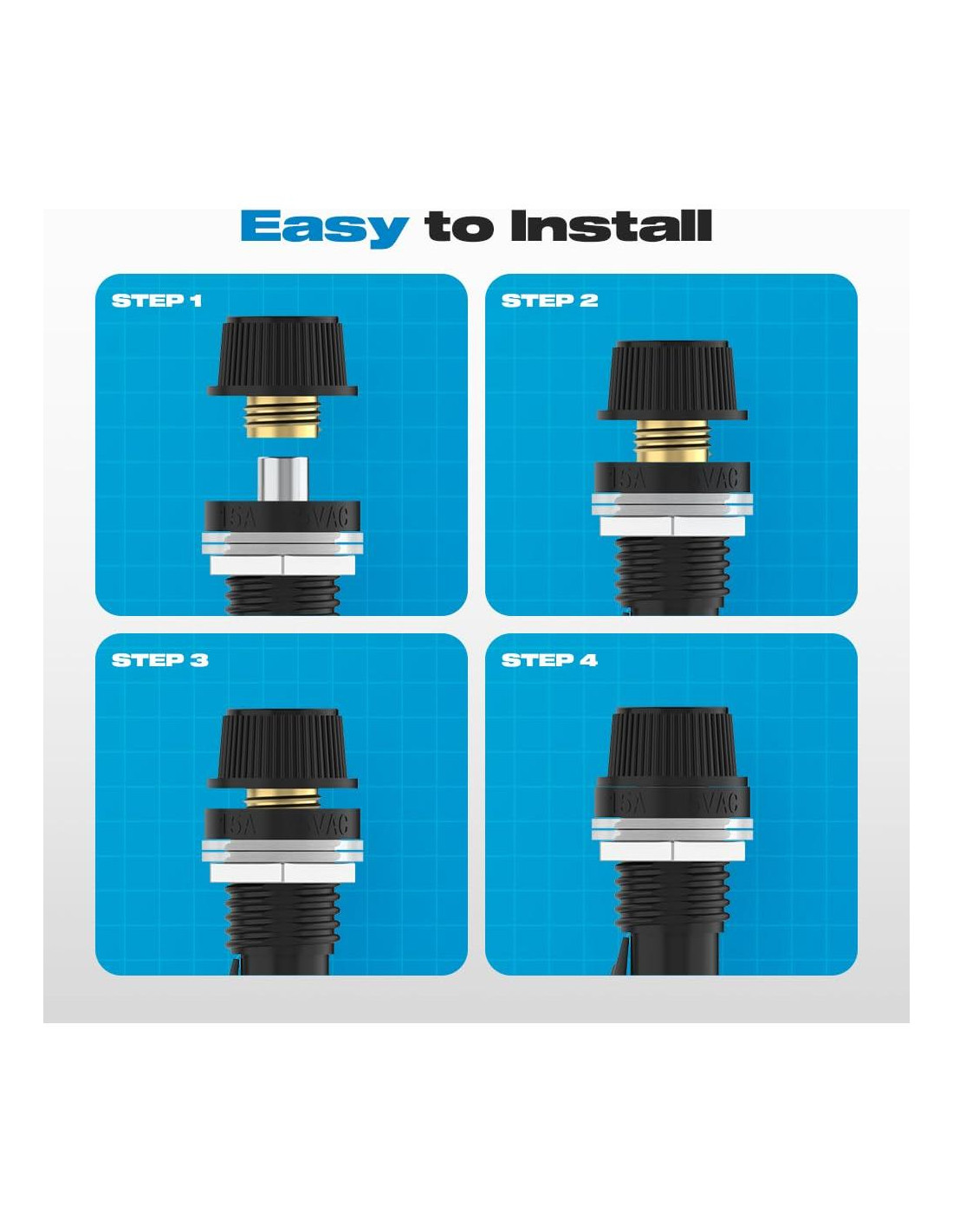 - Fácil Reemplazo: Permite un fácil reemplazo de fusibles quemados sin desensamblar el dispositivo. Viene con cableado pre-soldado para una fácil conexión.