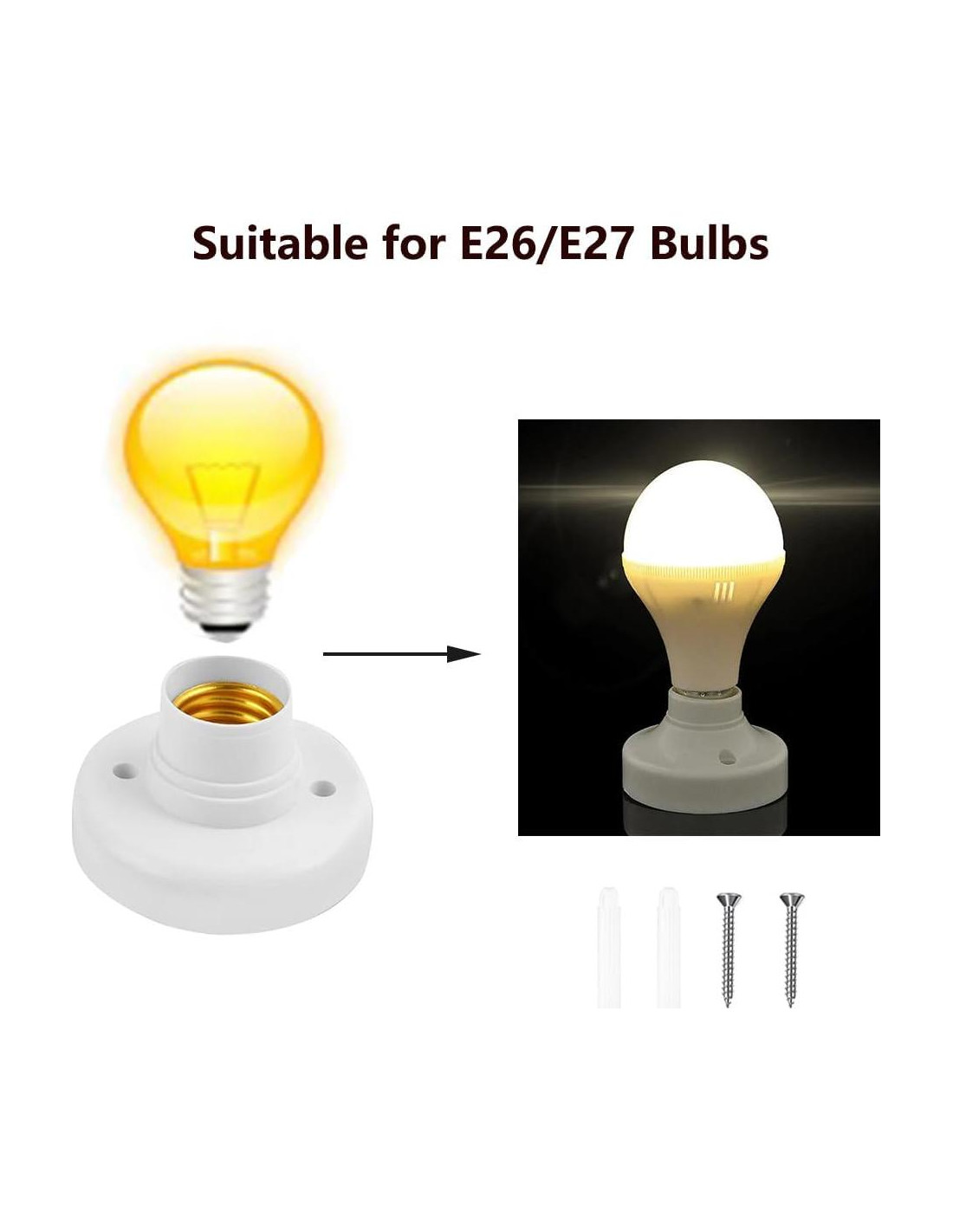 Nuestro portalámparas de 15 pies (4.57 m) tiene un interruptor de encendido/apagado a 3.28 pies (1 m) del enchufe para un fácil control. Este portalámparas es compatible con bombillas estándar E26/E27; un enchufe de CA de 2 clavijas de EE. UU. No regulable, potencia máxima: 60W, voltaje de trabajo: 0V-230V. El portalámparas está equipado con un interruptor de encendido/apagado que se puede encender y apagar fácilmente a través del interruptor de botón. Fácil de operar: los portalámparas vienen con interruptor de encendido/apagado y un cable de extensión, lo que te permite controlar el interruptor desde una distancia para una fácil operación. NOTA: Apaga el interruptor cuando no esté en uso para conservar energía para tu uso a largo plazo. Perfecto para iluminar sótanos, armarios, estudios, salas de estar, cocinas, dormitorios, habitaciones de niños, garajes, dormitorios, etc. Pueden colgarse directamente del techo, colgando de obras de arte o drapeados en cualquier poste.