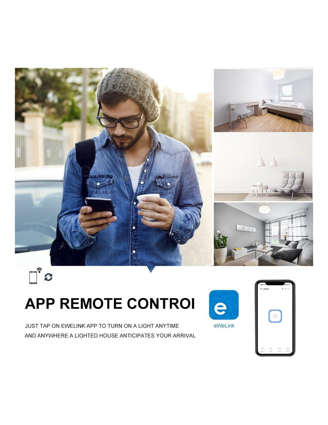 - [Control Remoto por APP] La cabeza de luz transmite datos a la plataforma en la nube a través del enrutador Wi-Fi, y puede controlar remotamente los electrodomésticos conectados a través de la gratuita APP eWeLink o programa mini Wechat. Puede descargar la versión de iOS en la App Store y la versión de Android en Google Play. eWeLink le permite controlar fácilmente su dispositivo.