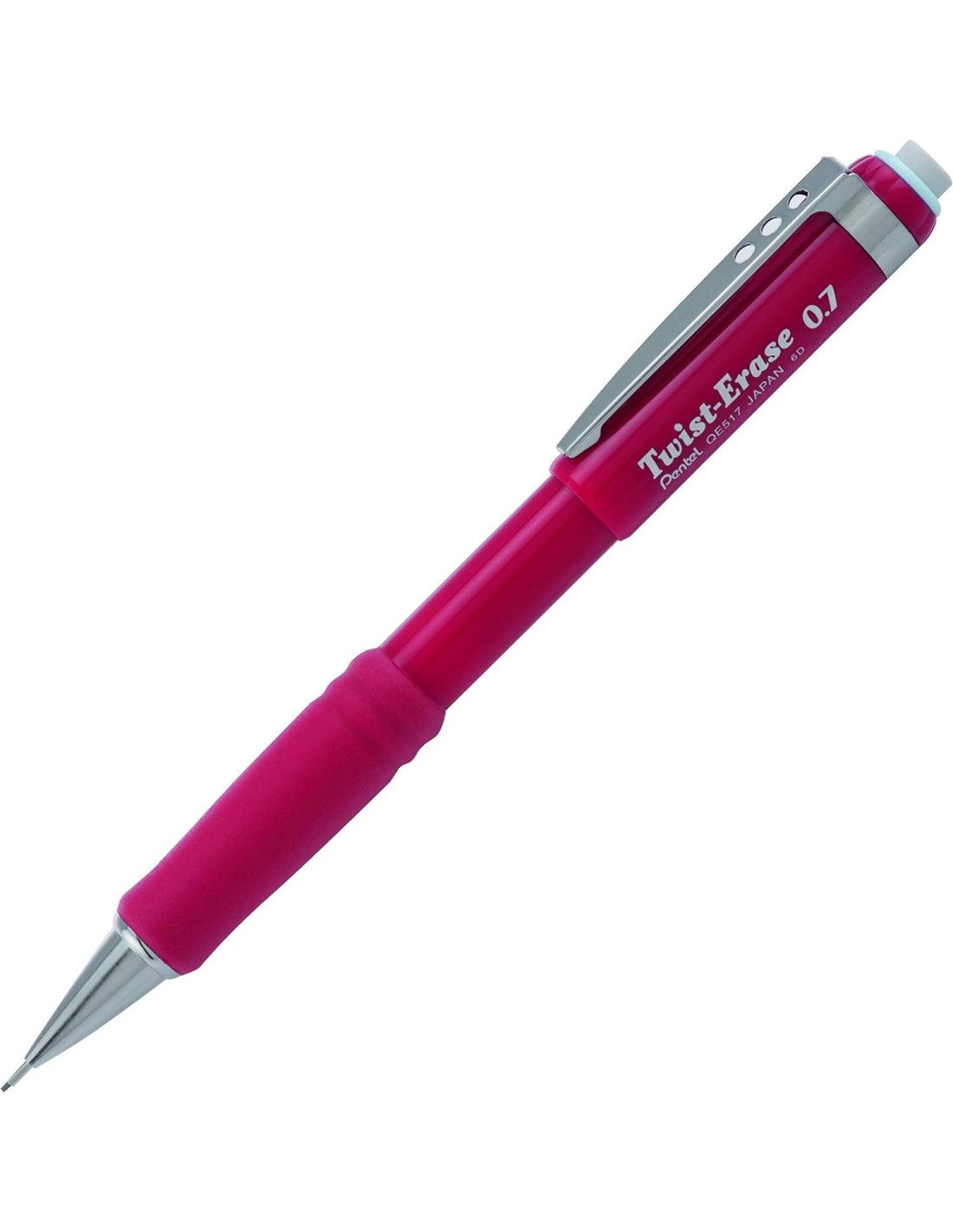 El Pentel Twist-Erase III cuenta con un agarre cómodo, extra suave y libre de látex para menos fatiga al escribir. El barril robusto y bien equilibrado hace de este el lápiz Twist-Erase más popular. Un borrador de giro más grande de lo habitual y de larga duración borra limpiamente cualquier error - sin manchas, sin rasgaduras de papel y sin fantasmas. Disponible en tamaños de mina de 0.5mm, 0.7mm y 0.9mm; viene precargado con mina Pentel super Hi-Polymer HB que nunca necesita afilarse, es super fuerte y produce una línea oscura clara. El diseño de la punta protectora estabiliza la mina para reducir la rotura y mantenerte escribiendo por más tiempo. Está respaldado por la garantía limitada de por vida de Pentel.