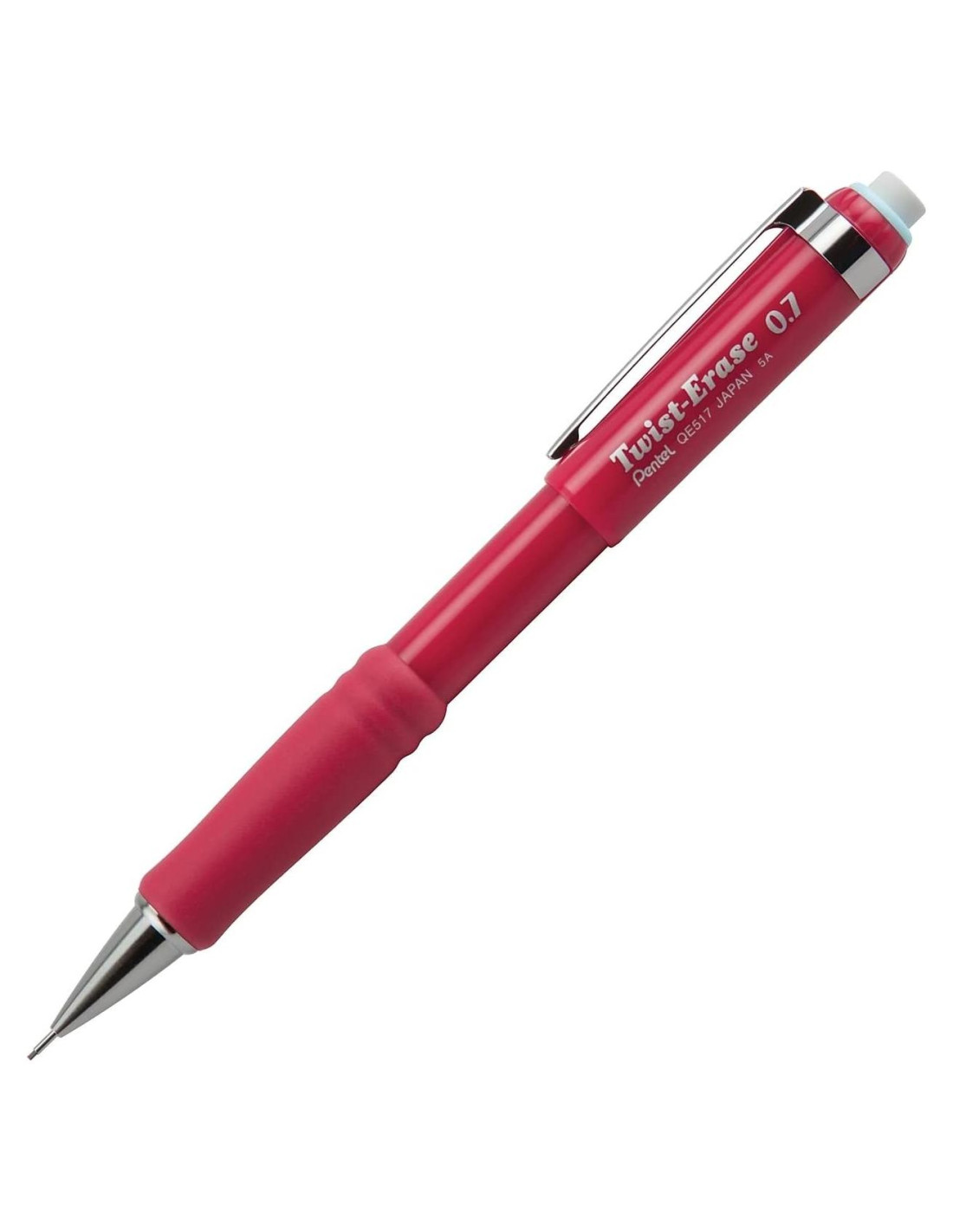El Pentel Twist-Erase III cuenta con un agarre cómodo, extra suave y libre de látex para menos fatiga al escribir. El barril robusto y bien equilibrado hace de este el lápiz Twist-Erase más popular. Un borrador de giro más grande de lo normal y de larga duración borra limpiamente cualquier error - sin manchas, sin rasgaduras de papel y sin fantasmas. Pre-cargado con mina Pentel Super Hi-Polymer HB que nunca necesita afilarse, es super fuerte y produce una línea oscura clara. El diseño de la punta protectora estabiliza la mina para reducir la rotura y mantenerte escribiendo por más tiempo.