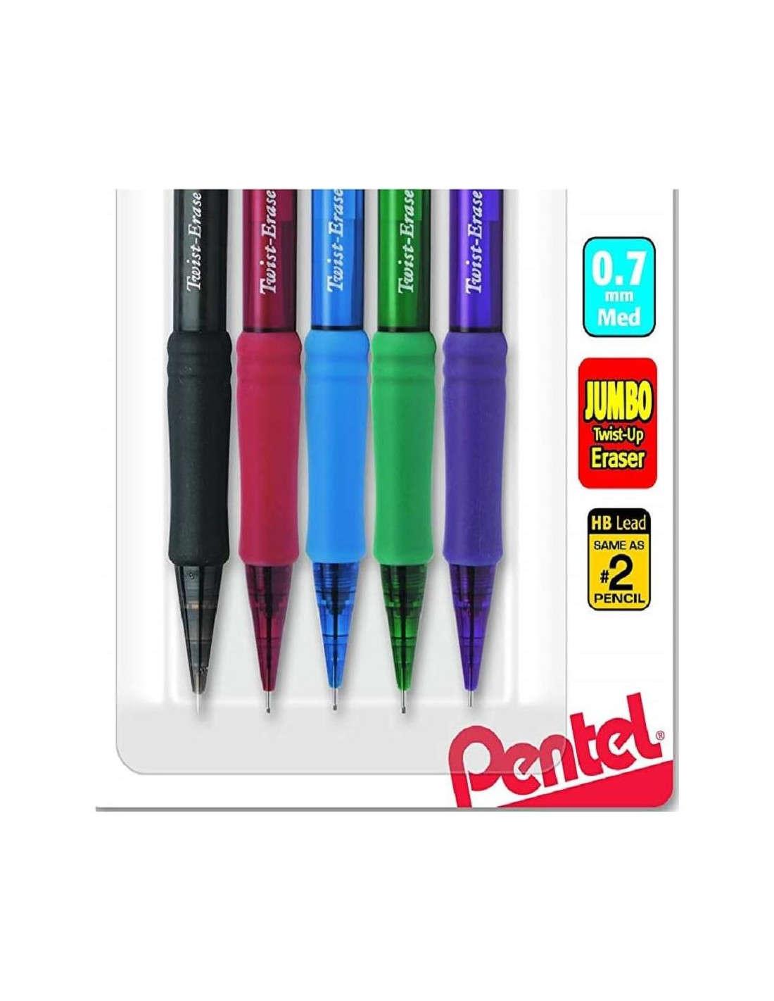 El Pentel Twist-Erase Express cuenta con un agarre cómodo, extra suave y libre de látex para menos fatiga al escribir. Los errores frecuentes no son un problema para la goma de borrar más grande de lo normal y de larga duración que borra limpiamente cualquier error - sin manchas, sin rasgaduras de papel y sin fantasmas. Viene precargado con mina Pentel Super Hi-Polymer HB que produce líneas finas, no requiere afilado. Está respaldado por una Garantía Limitada de por Vida.