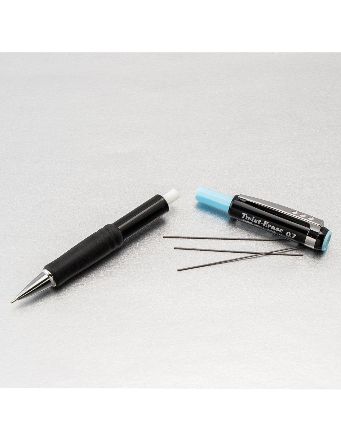 El Pentel Twist-Erase III cuenta con un agarre cómodo, extra suave y libre de látex para menos fatiga al escribir. El barril robusto y bien equilibrado hace de este el lápiz Twist-Erase más popular. Un borrador de giro más grande de lo habitual y de larga duración borra limpiamente cualquier error - sin manchas, sin rasgaduras de papel y sin fantasmas. Disponible en tamaños de mina de 0.5mm, 0.7mm y 0.9mm; viene precargado con mina Pentel super Hi-Polymer HB que nunca necesita afilarse, es super fuerte y produce una línea oscura clara. El diseño de la punta protectora estabiliza la mina para reducir la rotura y mantenerte escribiendo por más tiempo. Está respaldado por la garantía limitada de por vida de Pentel.