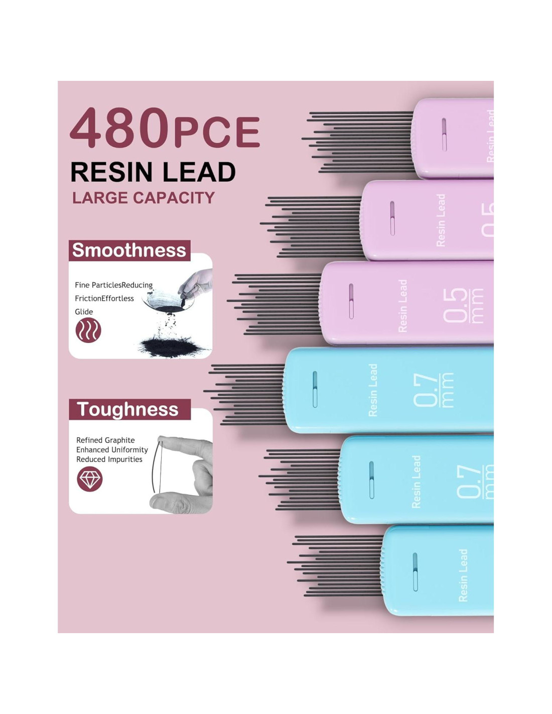 - MÁS OPCIONES PARA ESCRIBIR: Los lápices mecánicos vienen con mina de resina de 0.5mm/0.7mm, un total de 480pcs, cambiando libremente, adecuados para cada necesidad especial tuya.