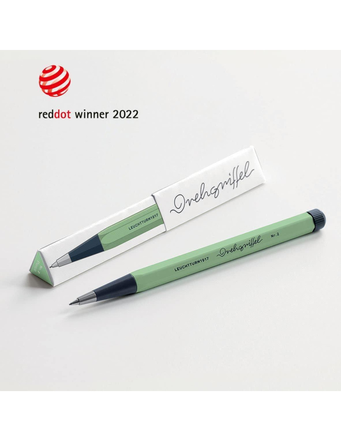 Inspirado en el diseño original del instrumento de escritura más antiguo del mundo que existió en 1920, el Drehgriffel Nr.2 tiene una impresionante silueta hexagonal. La punta cónica y el mecanismo de giro presentan un color contrastante con el cuerpo. Nombrado como un homenaje a la cultura de la escritura. Combina la palabra Drem (giro) asociada con el mecanismo de giro y Griffel (pluma) derivada del instrumento de escritura más antiguo en el idioma griego grapheon = instrumentos de escritura. El mecanismo de giro y los recambios también se fabrican en Alemania y han ganado numerosos premios de diseño. El DREGLIFLE No. 2 mecánico se fabrica en Alemania y la cabeza de giro abrirá la cremallera de la punta y la mina se extruirá hacia adelante. Cuando el mecanismo de giro está de vuelta, la cremallera se cierra y la mecha se mantiene en su lugar. El núcleo se puede restaurar en múltiples recambios y viene con un mecanismo de cámara para empujar el siguiente recambio tan pronto como se usen los recambios.