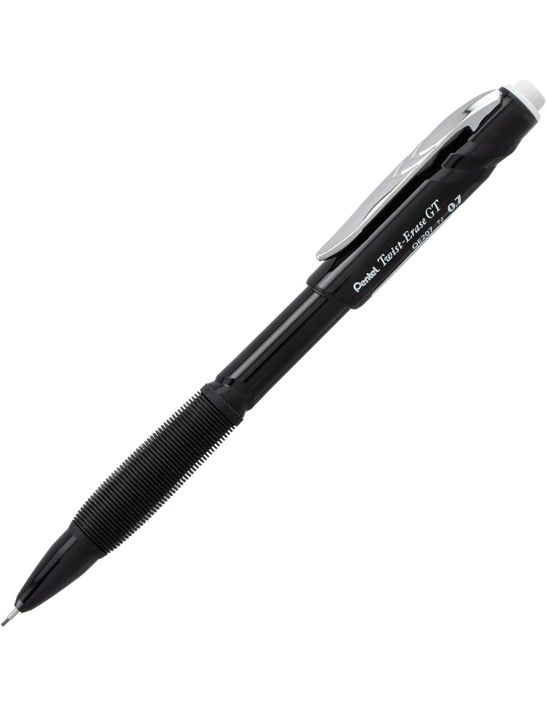 El Pentel Twist Erase GT cuenta con una funda deslizante para prolongar la escritura, reducir la rotura de la mina y proteger tu bolsillo. El agarre extra suave y libre de látex reduce la fatiga al escribir. El borrador retráctil elimina limpiamente los errores. Viene precargado con mina Pentel Super Hi-Polymer HB de 0.7mm que produce líneas medias, no requiere afilado. Garantía limitada de por vida.