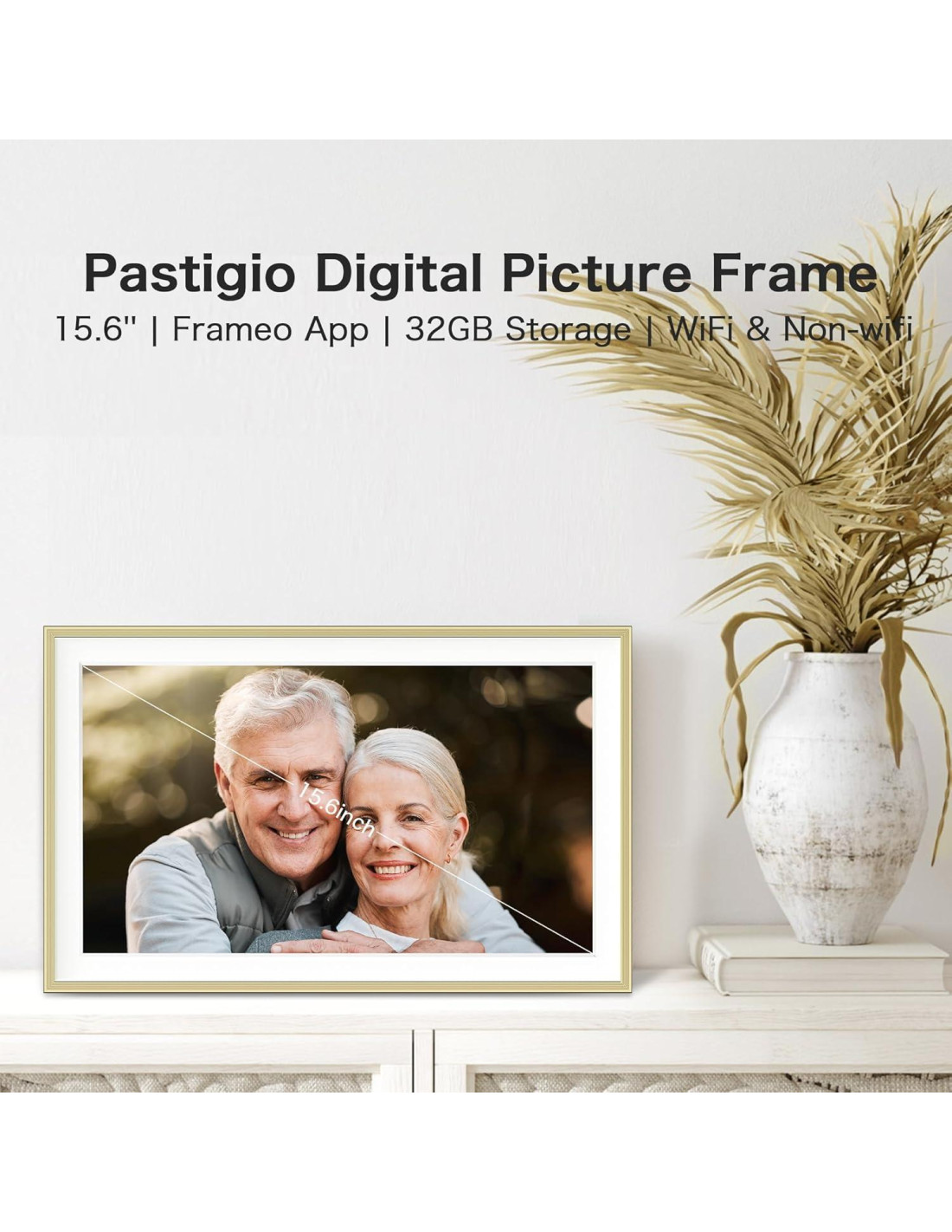 - Pantalla Táctil FHD IPS; El marco de fotos digital dorado de Pastigio está equipado con un panel digital de 15.6 pulgadas con FHD 1920x1080P para colores vívidos y detalles exquisitos. Configura y visualiza fotos de manera conveniente con la pantalla táctil. A través del marco de fotos digital wifi, puedes ver el pelaje de tu adorable mascota, ver las pecas juveniles en rostros sonrientes, ver cómo cada pequeño detalle construye tu vida colorida. Se admiten múltiples formatos de imagen, JPG/JPEG/BMP/PNG, y formato de video por MP4.