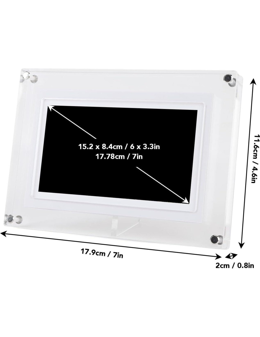 - Diseño Único: Experimenta la forma única de preservar tus momentos preciosos con nuestro marco de fotos digital de acrílico de 7 pulgadas. Ya sea colocado en un escritorio o estante, sirve como un dispositivo electrónico elegante y una pieza decorativa para tu hogar u oficina.