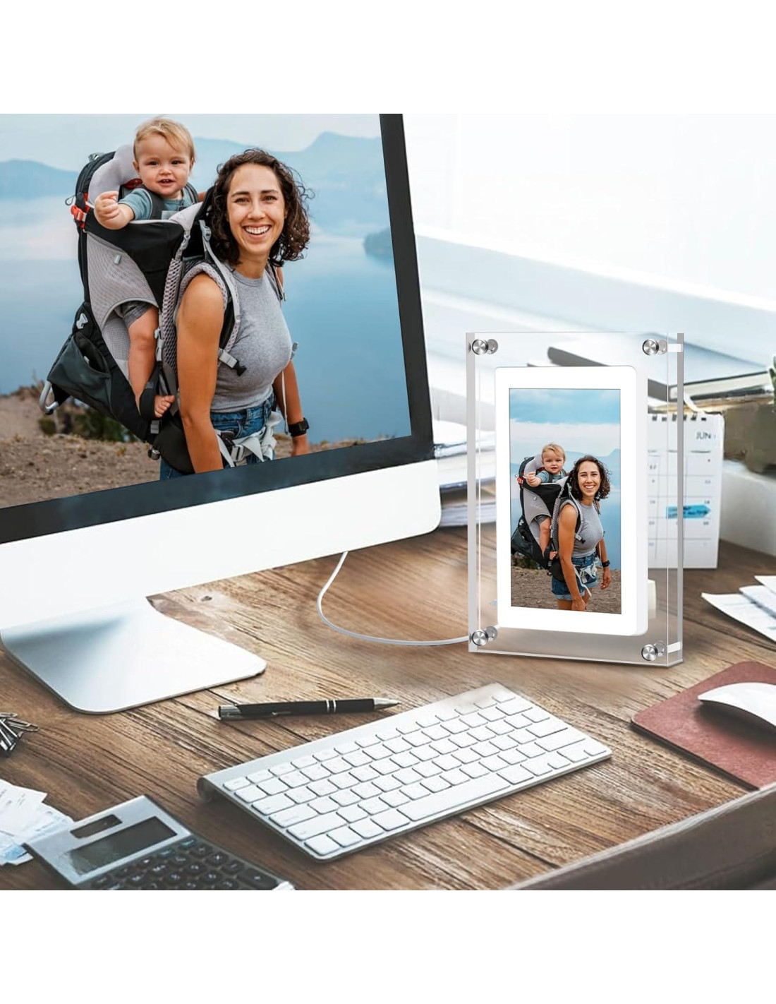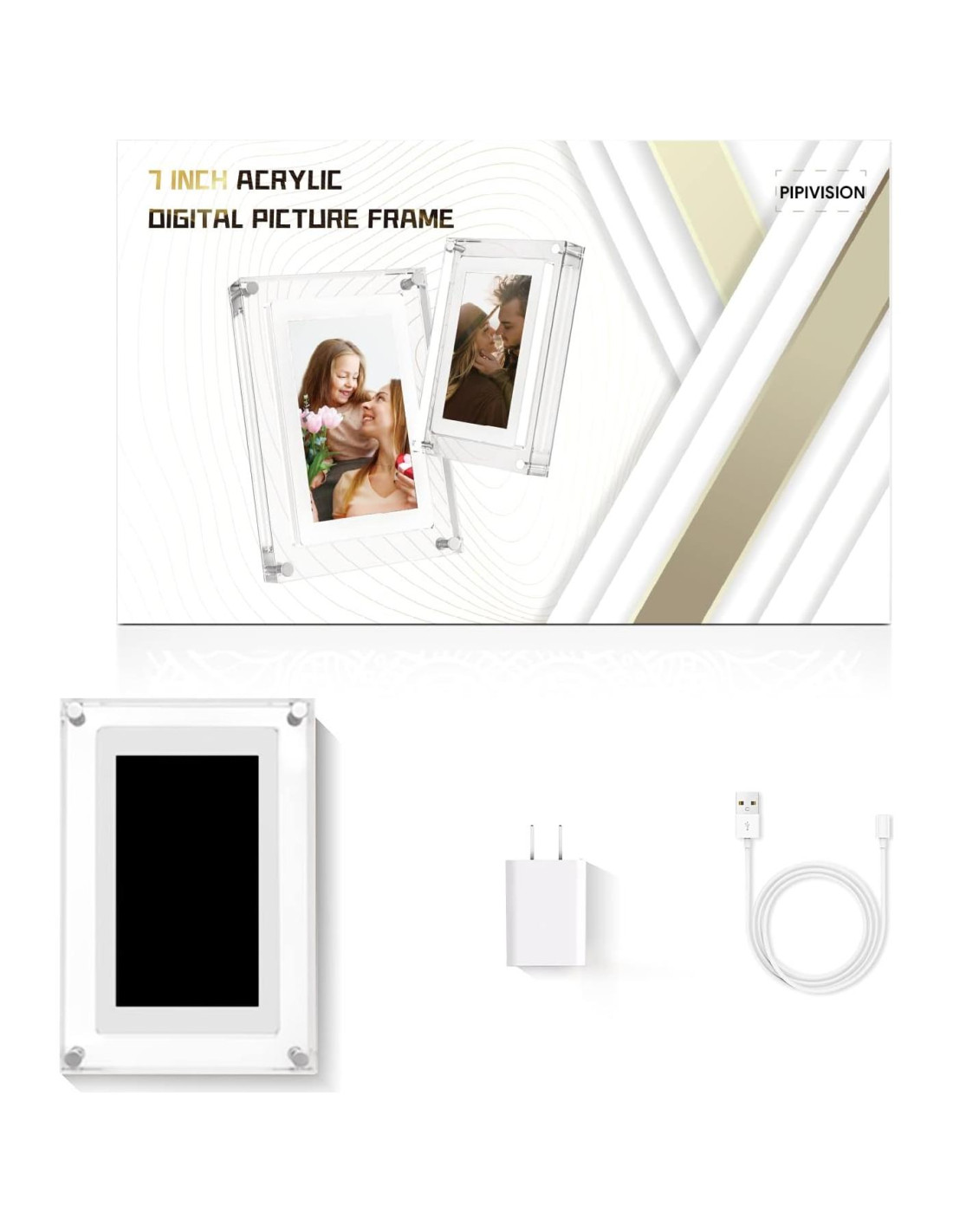 - El marco de fotos digital acrílico de 7 pulgadas presenta un marco de acrílico claro, ofreciendo detalles vívidos y nítidos de fotos y videos para una experiencia visual superior.