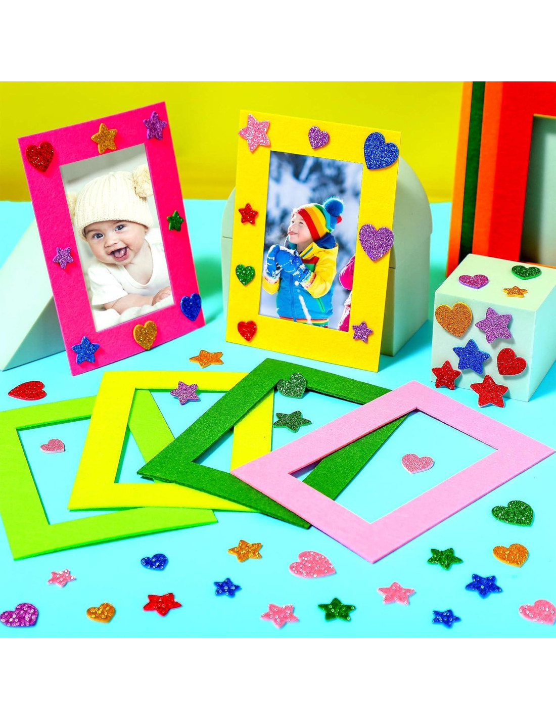 - Cantidad abundante: recibirás 74 piezas del Kit de Manualidades de Marcos de Fotos, incluye 24 piezas de marcos de fotos coloridos en 12 colores diferentes y 50 piezas de pegatinas de espuma brillantes en total, que satisfacen tus necesidades de fotos y exhibición de imágenes DIY, cantidad suficiente para compartir con tus amigos y vecinos