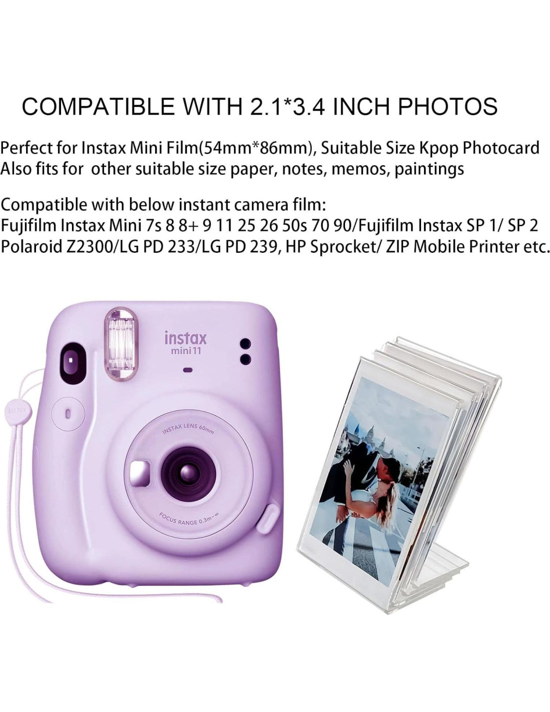 Marco de Foto Instax Mini 2x3, Marco de Foto Polaroid de Escritorio, Marco de Mesa Instax Mini Compatible con fotos tomadas por Fujifilm Instax Mini 12 11 9 8 7s 40 90 70 50 25s 26, SP-1/SP-2/Impresora de smartphone Mini link/link2/ Película Polaroid Snap/Snap Touch/Cámara PIC-300/Impresora ZIP. Marco de foto de película de 3 pulgadas y otras fotos mini. Fácil de Usar Deslice sus fotos en los marcos para fotos y muéstrelo en la mesa, estante o escritorio. Exhibición Clara Sin Marco Hecho de paneles de acrílico super claros de 2.5mm, verdadero marco de foto sin marco, sin bordes cubiertos. Regalo Perfecto Gran regalo para la familia, amantes, amigos, padres y seres queridos, especialmente en festividades como Navidad, cumpleaños, Día de la Madre y bodas.