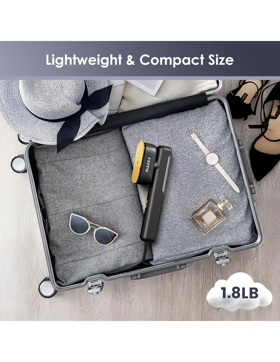 - 110V-240V Vaporizador de Doble Voltaje para Viajes Globales Experimente el planchado sin complicaciones en todo el mundo con nuestro vaporizador de ropa que cuenta con tecnología avanzada de doble voltaje 110V-240V. No se necesitan adaptadores, Conectar y Usar, Fácil de usar. Este vaporizador de viaje para ropa es su compañero sin arrugas para viajes internacionales, viajes de negocios o uso diario. Ya sea que esté en Europa, EE. UU. o Asia, este vaporizador de viaje es lo suficientemente compacto para llevar en el equipaje de mano.