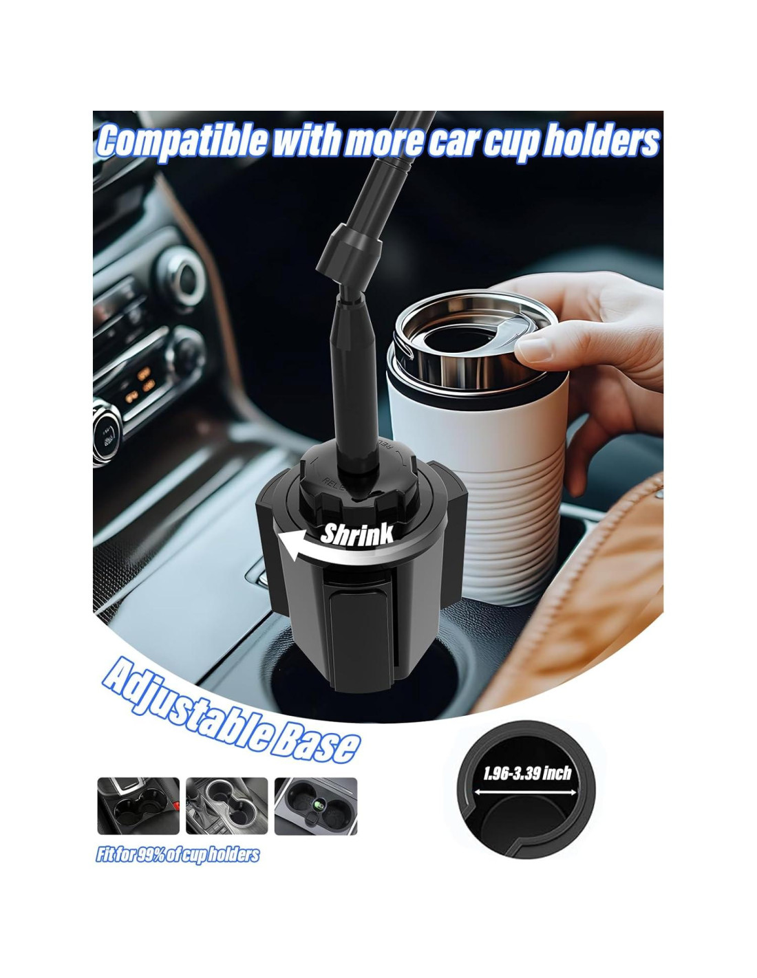 - [Brazo dual de metal ajustable a 360]: El soporte para tablet en portavasos LYFICCS tiene una altura total de 41.9 cm, con dos brazos de metal largos ajustables, que se pueden bloquear con una perilla. El brazo de metal puede girar 360, proporcionando flexibilidad óptima, permitiéndole ajustar el ángulo de visión y la altura perfectos, y no bloqueará la palanca de cambios, asegurando su conducción segura.
