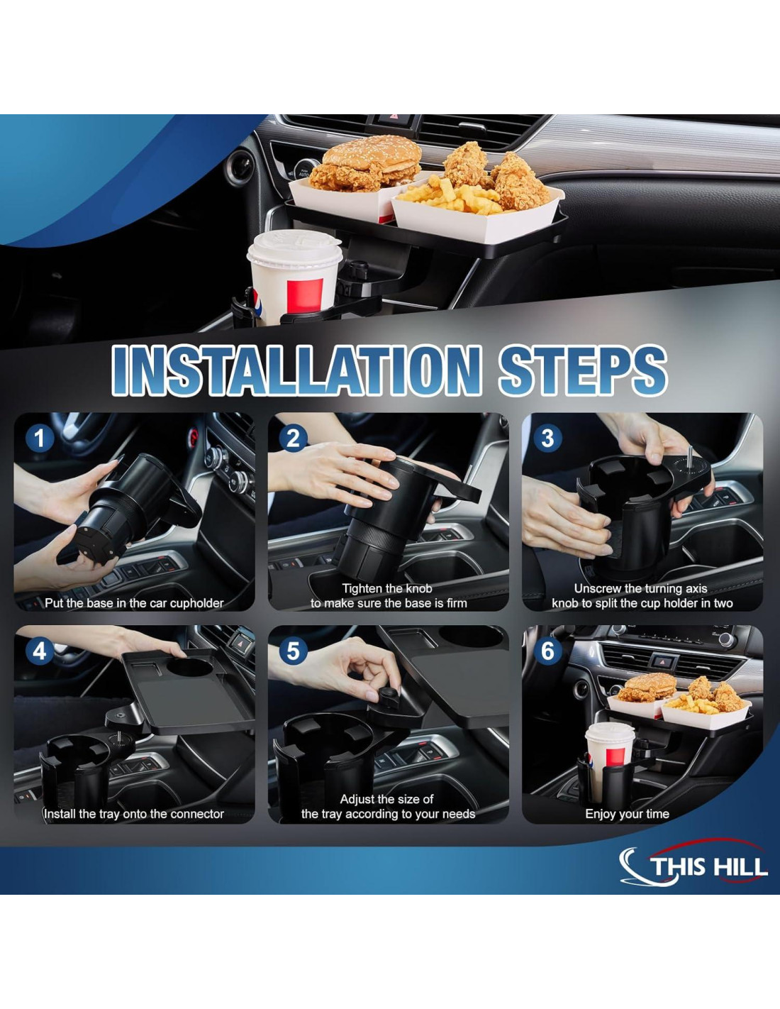 - Diseño amigable para la familia y seguridad en la conducción: A nadie le gusta un interior de coche desordenado, manteniendo todo en orden. Con el portavasos para coche THIS HILL con bandeja, tu asiento del conductor y el asiento del pasajero obtendrán instantáneamente un gran espacio de almacenamiento. A diferencia del expansor de portavasos tradicional, nuestro último portavasos multifuncional no solo puede usarse como una mesa temporal para comer en el coche, sino también como almacenamiento. Te mantiene organizado y facilita encontrar lo que buscas.