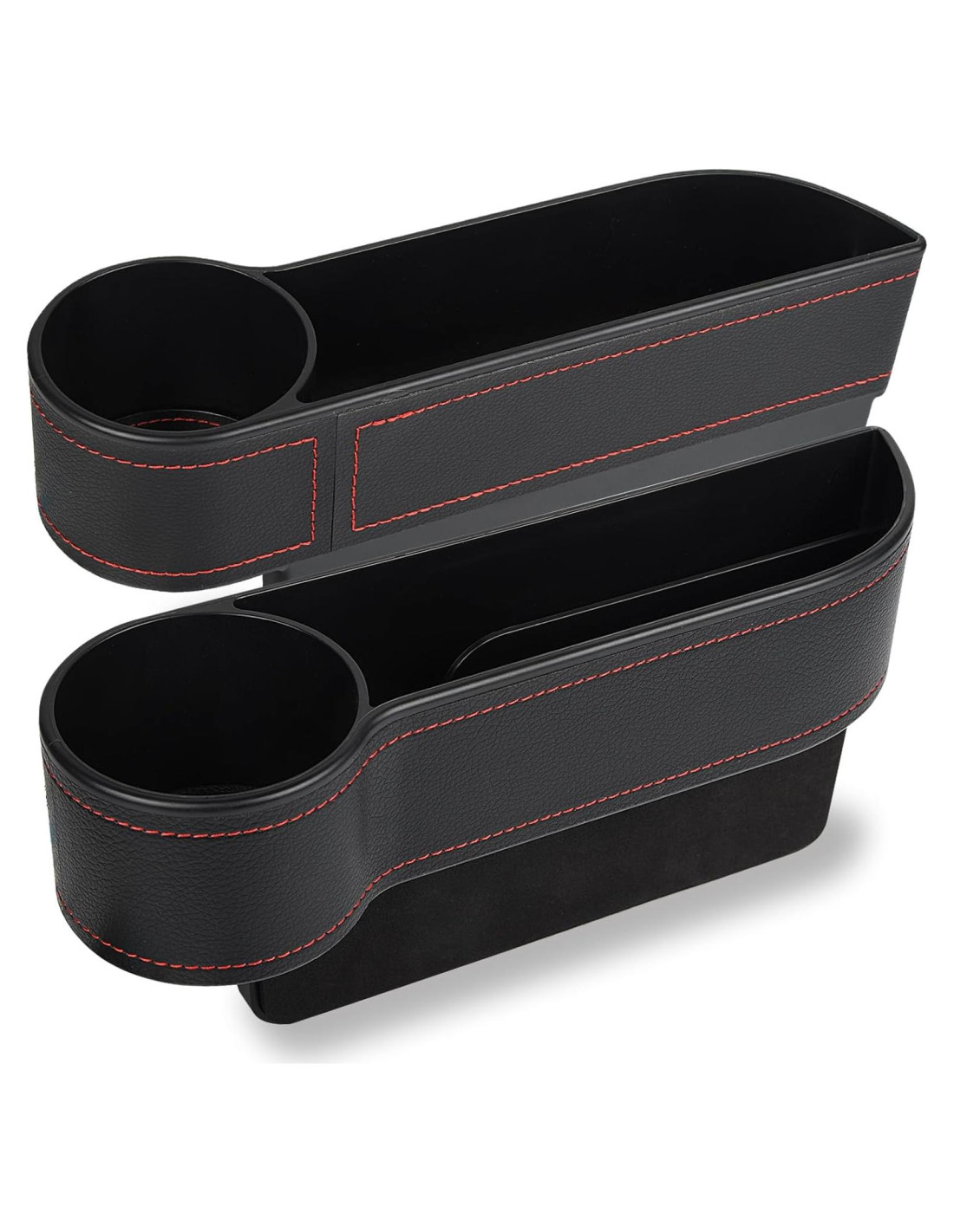 - [Relleno de Espacio entre Asientos con Portavasos, Listo para Usar] Este conjunto de 2 rellenos de espacio entre asientos es extremadamente fácil de instalar en pocos segundos. Simplemente inserta este relleno de espacio entre asientos delanteros entre la consola central y el asiento y será útil. No te preocupes por afectar la conducción y el viaje normales