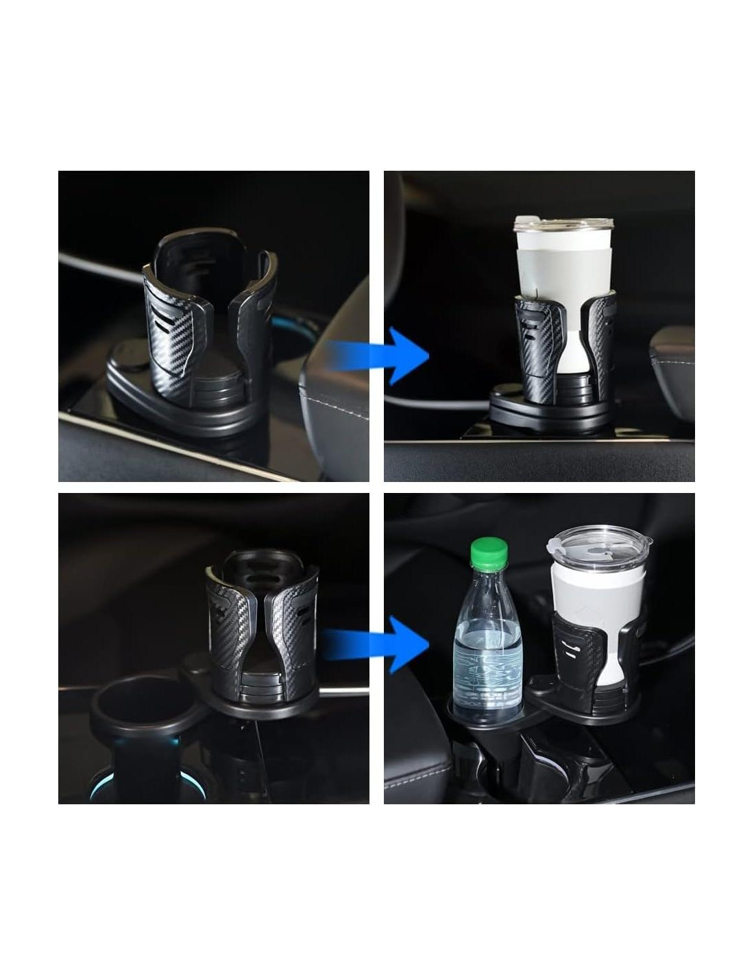 Convierte uno de tus soportes para tazas en dos soportes para tazas, puedes poner dos botellas de agua, al mismo tiempo, si tienes una taza de agua grande o pollo frito y otra comida, también puedes ponerlo en el soporte de taza grande ajustable en la parte superior. Muy práctico.