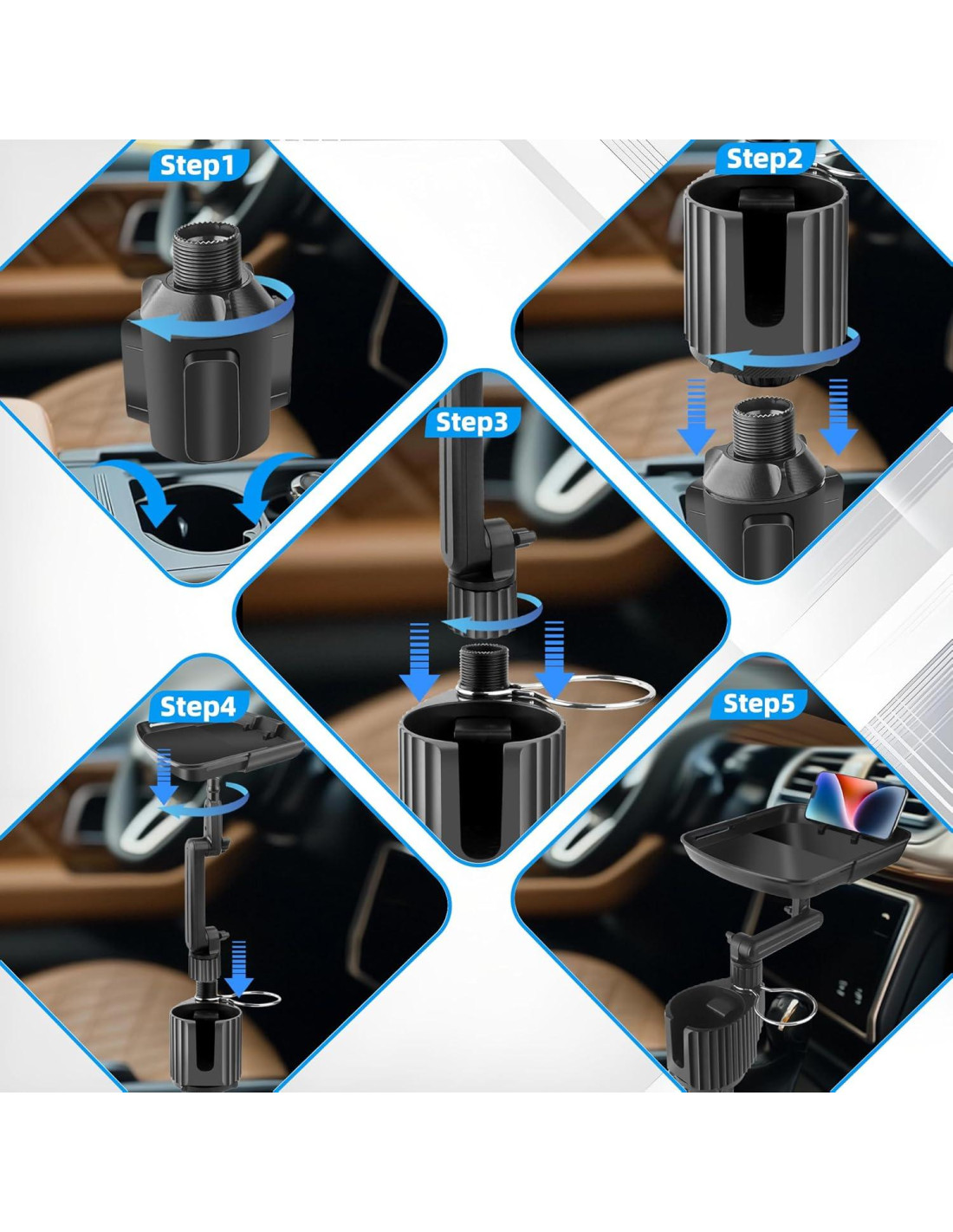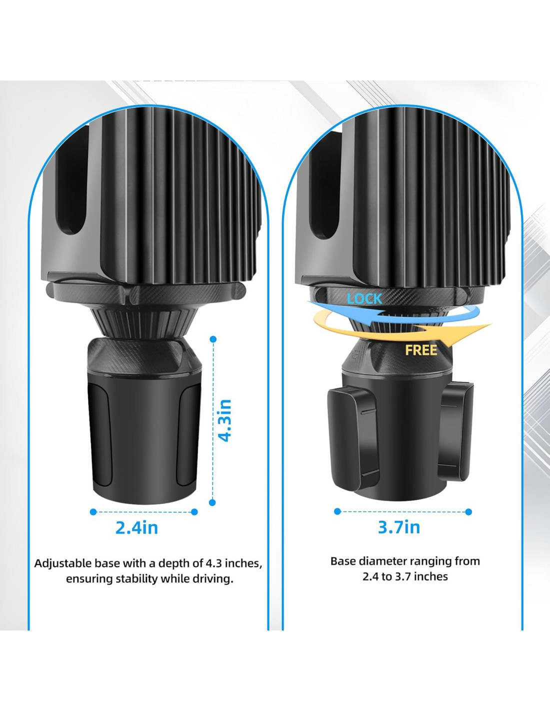- [Compatible con Múltiples Modelos de Coches] La base ajustable se adapta a soportes para tazas con un diámetro de 2.5"-4.3" (6.35-10.92 cm), compatible con SUV, camiones, casas rodantes, y más, proporcionando una instalación estable que previene tambaleos o derrames.