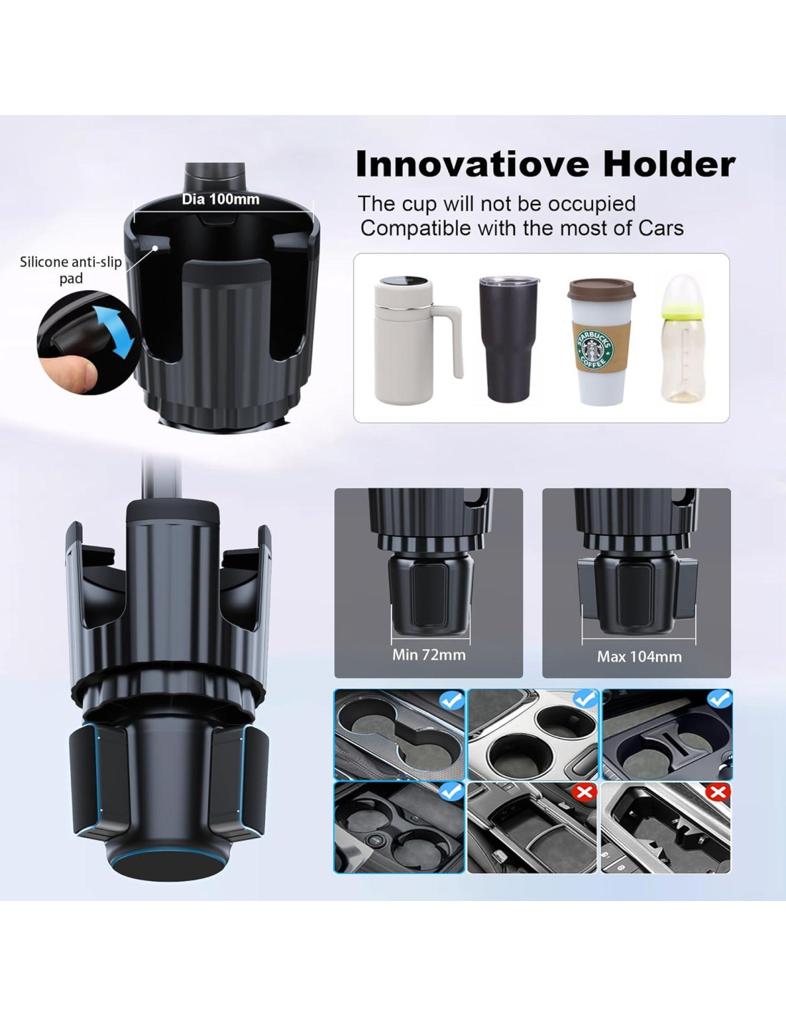 - [Estable y Robusto] El soporte para tablet en portavasos para auto está hecho de materiales de alta calidad y duraderos, diseñado para estabilidad, este soporte asegura que tu dispositivo permanezca en su lugar de forma segura incluso en caminos difíciles. Disfruta de una experiencia de conducción sin preocupaciones sin la distracción de un soporte inestable.