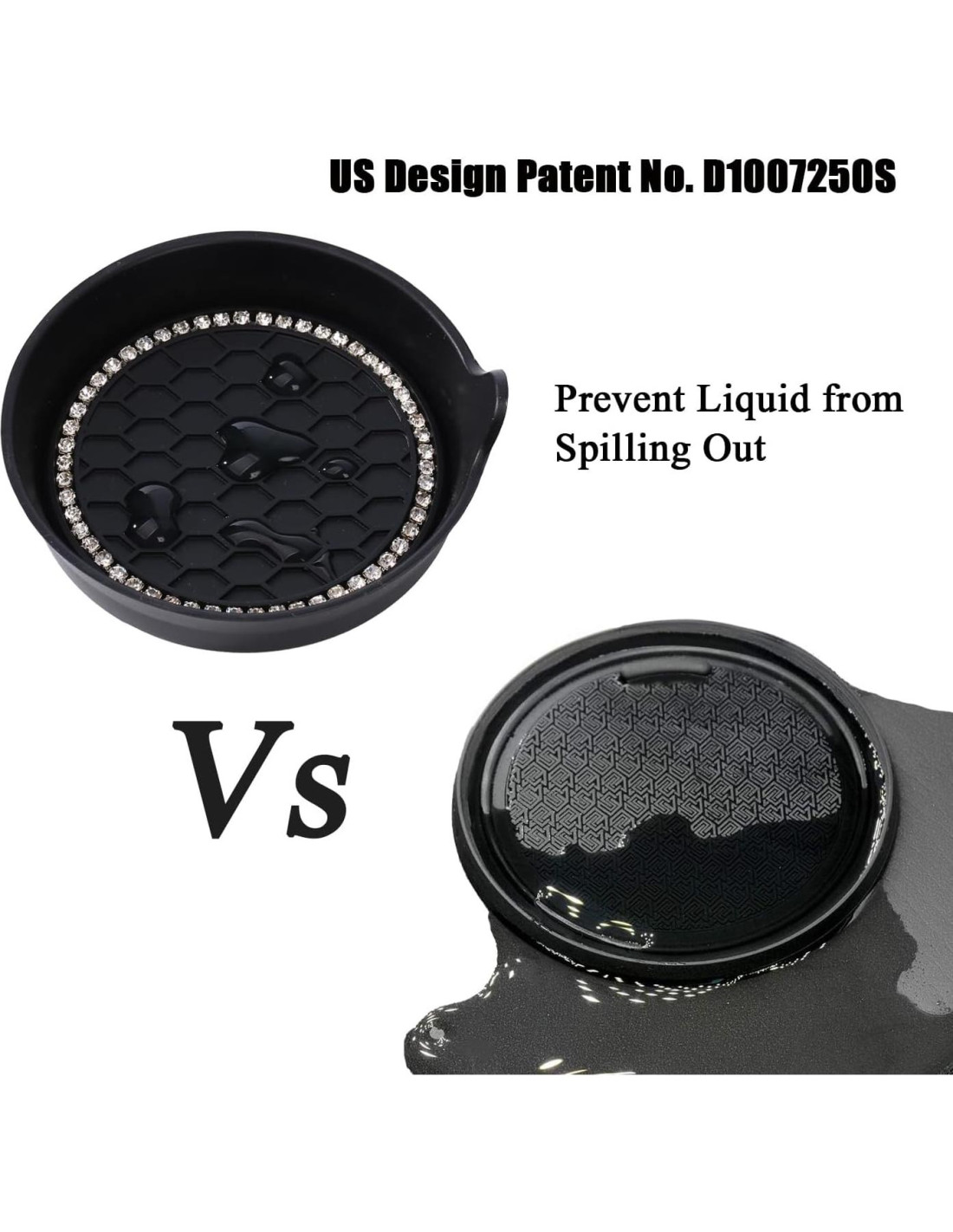 - Diseño de Cristales de Rhinestone Brillantes: El elegante diseño brillante es una buena decoración interior para tu auto. No puedes perderte estos posavasos utilitarios y hermosos.