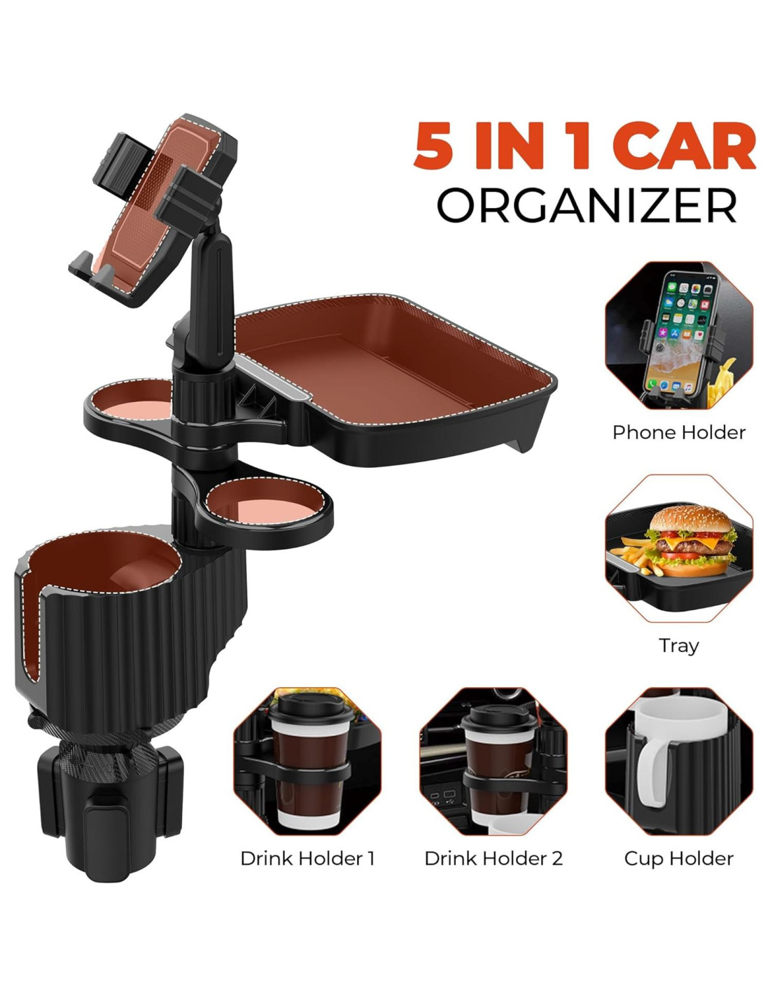 - [Simplifica la Organización del Coche] Di adiós al desorden y caos dentro de tu coche. Con compartimentos versátiles y construcción duradera, este soporte para tazas facilita mantener tus esenciales organizados y al alcance, incluso durante largos viajes.