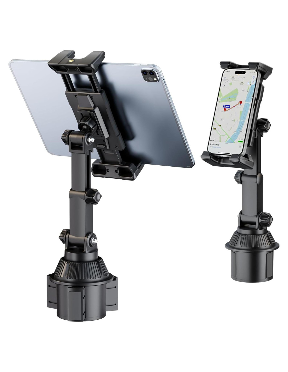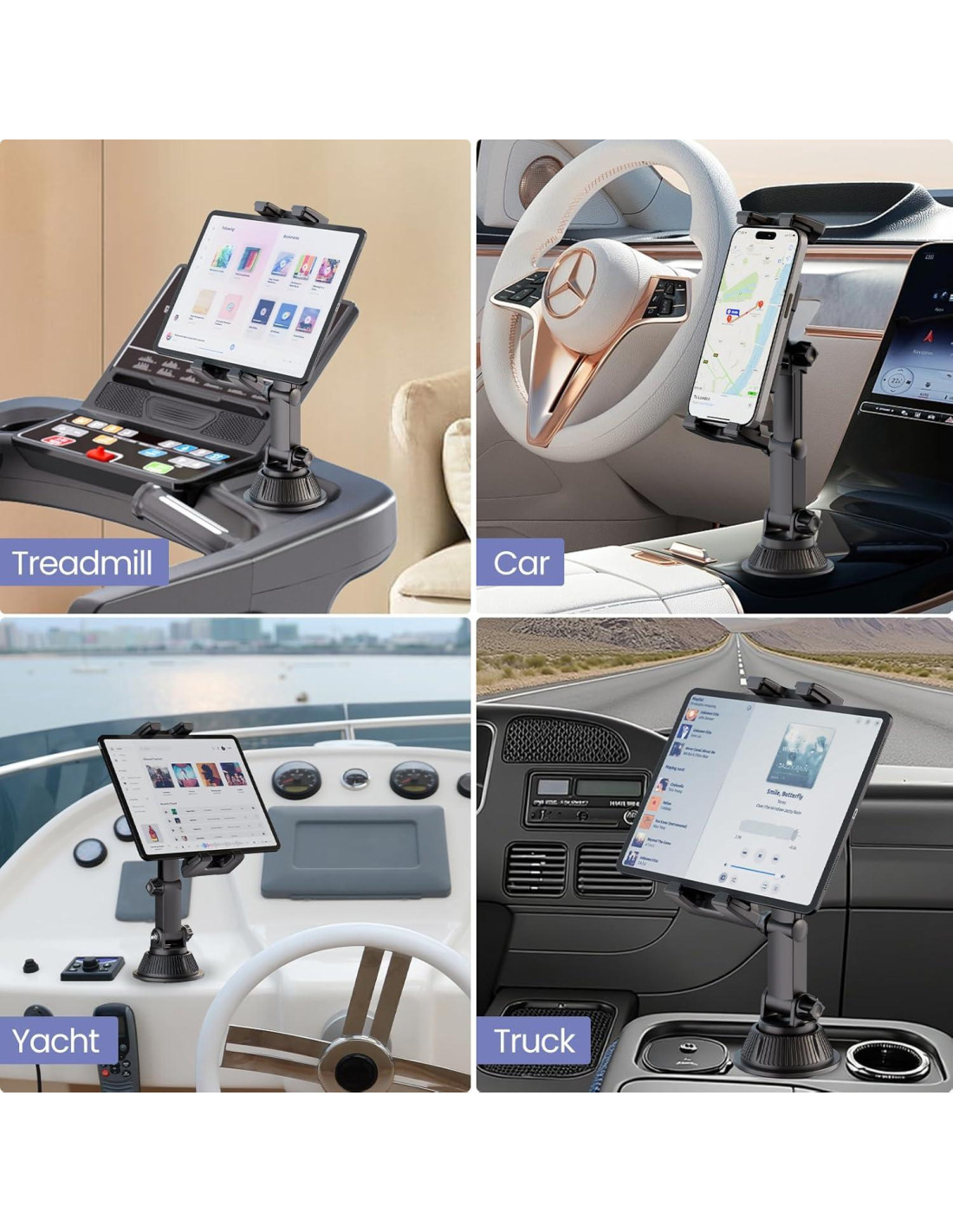 - [Fijación Perfecta] El soporte para iPad en el automóvil es adecuado para portavasos de automóvil con un diámetro de 2.6-3.9 pulgadas (6.6-9.9 cm), y la base se puede apretar y aflojar fácilmente mediante rotación. Las tres superficies de contacto están equipadas con almohadillas antideslizantes para bloquear firmemente el soporte para iPad en el portavasos de su automóvil.