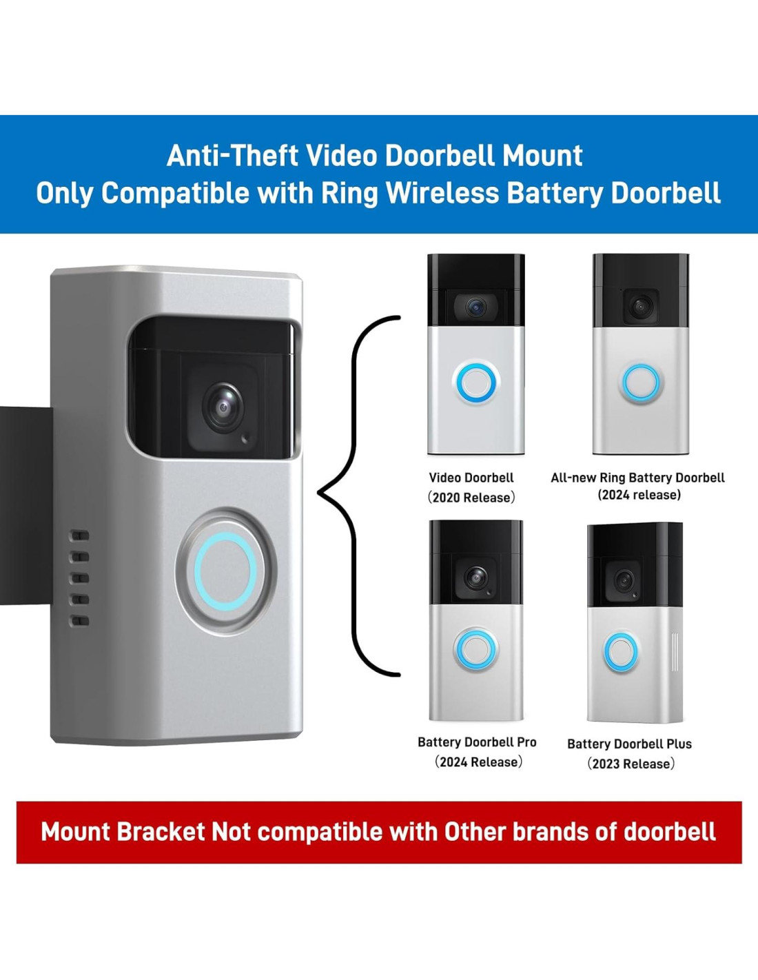 - Soporte de Timbre Antirrobo compatible con el nuevo Timbre de Batería Ring (Lanzamiento 2024) y Timbre de Batería Ring Plus (Lanzamiento 2023), Timbre de Batería Ring Pro (Lanzamiento 2024), Timbre de Video Ring 3 Plus, Timbre de Video Ring 4, Timbre de Video Ring (Lanzamiento 2020), (Consejo: el Timbre no está incluido en el paquete)