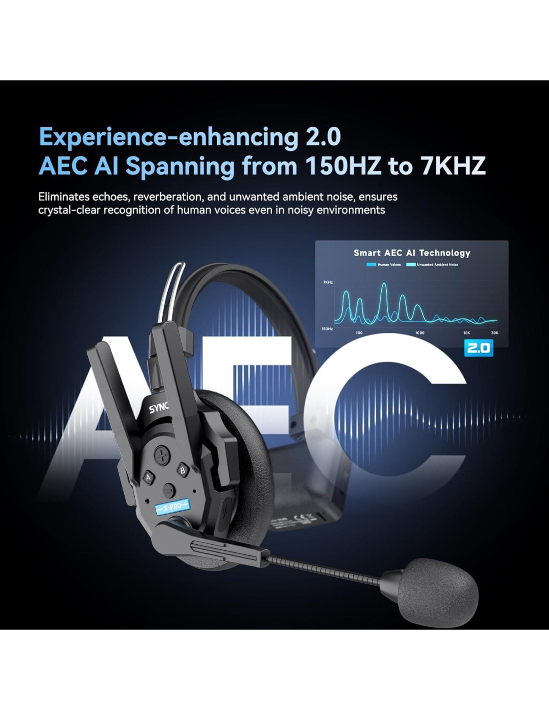 Auricular Xtalk XPro, con antenas de alta ganancia dual, proporciona un rango estable de 500m (1640.42 pies) para la comunicación del equipo, ideal para grandes eventos con cientos a miles. El Maestro ahora tiene un control efectivo de un botón que permite la silenciamiento inmediato de todos los remotos durante interrupciones o disputas, manteniendo así el enfoque total en la conversación del Maestro. El sistema de comunicación por intercom Xtalk XPro de auriculares de 2 vías cuenta con el Modo Boost. Esto permite el cambio de espectro inteligente con solo presionar un botón, llevando la calidad de las llamadas del equipo a nuevas alturas. El innovador Algoritmo MasterFree de SYNCO, que permite la flexibilidad de designar cualquier auricular como el dispositivo maestro, asegurando sesiones ininterrumpidas sin preocupaciones de batería. La tecnología AEC de XPro elimina ecos y ruidos, asegurando un reconocimiento de voz claro y conversaciones precisas en cualquier entorno. Monitoreo en tiempo real y auricular con cable en uno! Conéctate con tu equipo y gestiona el audio desde cámaras, grabadoras sin auriculares adicionales. Con su diseño de bajo consumo y baterías recargables y reemplazables, el Xtalk XPro te permite mantener tu auricular alimentado por más de 24 horas. Hecho de ABS ligero y cuero suave, el Xtalk XPro pesa solo 194g (6.84 oz) con la batería incluida, asegurando comodidad para un uso prolongado. Auriculares x 2 Cable x1/Estación de Carga x1 Filtro de Viento x2/Cojines de Espuma On-Ear x2/Batería Recargable x2/