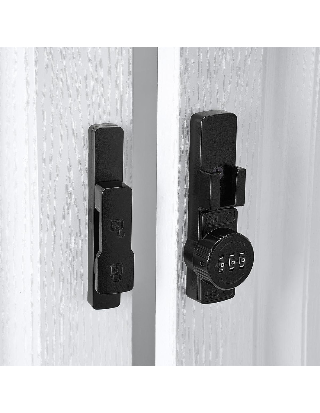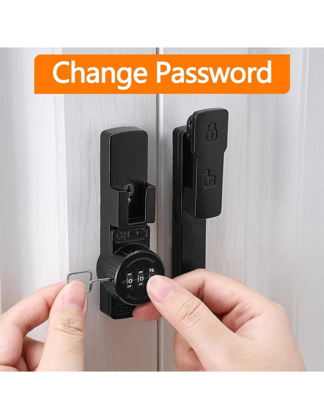 - Con pestillo de puerta sin llave de 3 dígitos - Nuestra cerradura de puerta ha sido mejorada con una cerradura de contraseña de 3 dígitos. No es solo un pestillo, sino también una cerradura de combinación. Puedes usarlo como un pestillo simple o una cerradura de combinación. El 3-Dígitos proporciona 1,000 posibles contraseñas. Puedes establecer tu propia contraseña y cambiarla libremente. Puede mejorar enormemente la seguridad de tu cerradura y prevenir intrusos.