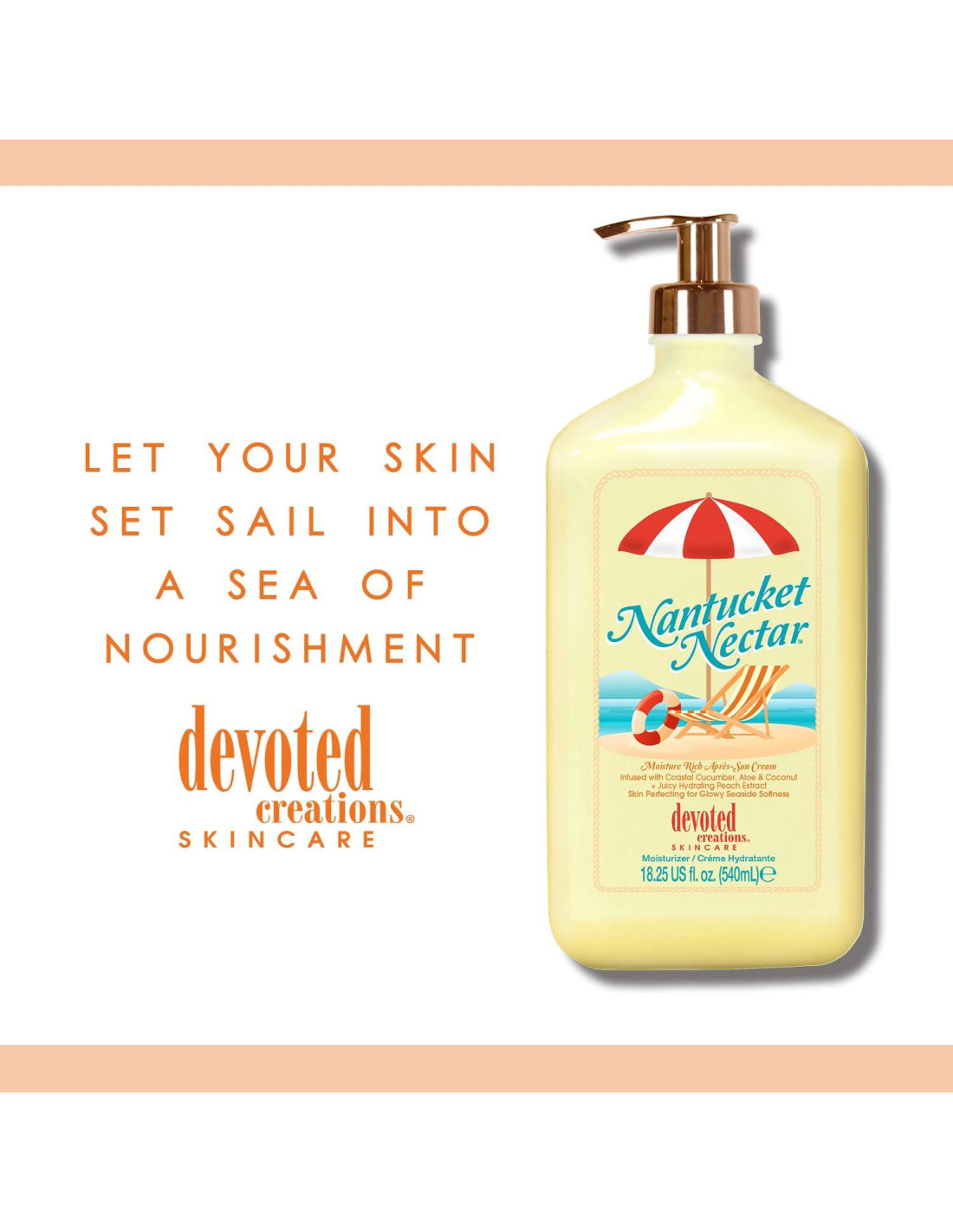 Este hidratante después del sol elevado está diseñado para rehidratar y realzar la piel besada por el sol, dejándote con un acabado ligero, suave y perfecto. Infundido con una jugosa mezcla de pepino, aloe y coco, esta lujosa fórmula de estilo costero sacia y calma para resultados listos para el fin de semana, todos los días. El extracto de durazno, un héroe de hidratación que potencia el brillo, proporciona un aspecto radiante y renovado, mientras que el extracto de jengibre trabaja para suavizar sutilmente y ayudar a refinar la apariencia de la celulitis, dejando la piel elegante y pulida sin esfuerzo. Desde brunches frente al océano hasta tardes de polo en la playa, este esencial de playa mantiene la piel suave como la seda, reabastecida y luminosamente sin esfuerzo. Es hora de disfrutar de un lujo instantáneo con Nantucket Nectar.