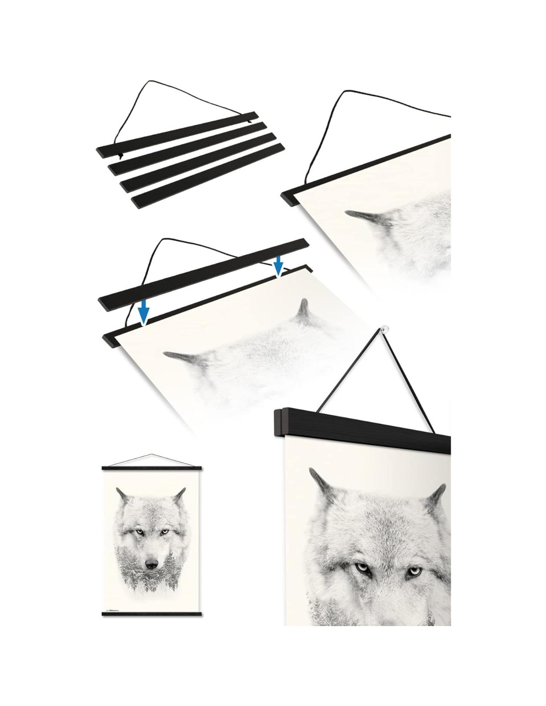 - El diseño fácil de colgar presenta 2 pares de rieles de madera con imanes ocultos que se aseguran juntos en la parte superior e inferior del póster y un colgador a juego para una rápida ensamblaje