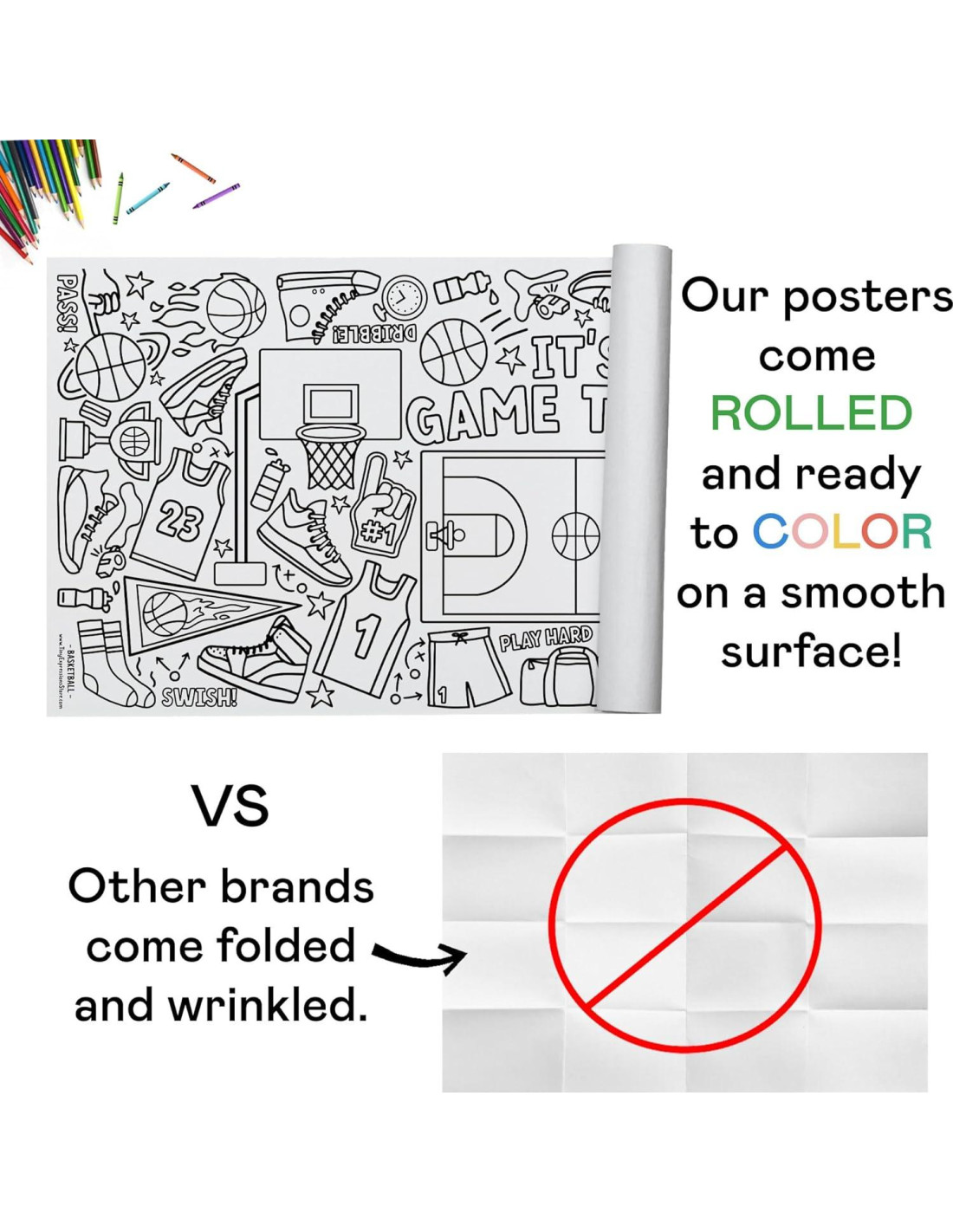 - DIVERTIDA FIESTA DE CUMPLEAÑOS DE BALONCESTO: ¿Planeando una fiesta temática de baloncesto? Este enorme banner para colorear presenta mates, camisetas, zapatillas, aros y una cancha completa con el texto en negrita "¡Es Hora de Jugar!" - ¡seguro que mantendrá a los niños entretenidos durante horas de divertida actividad de colorear!