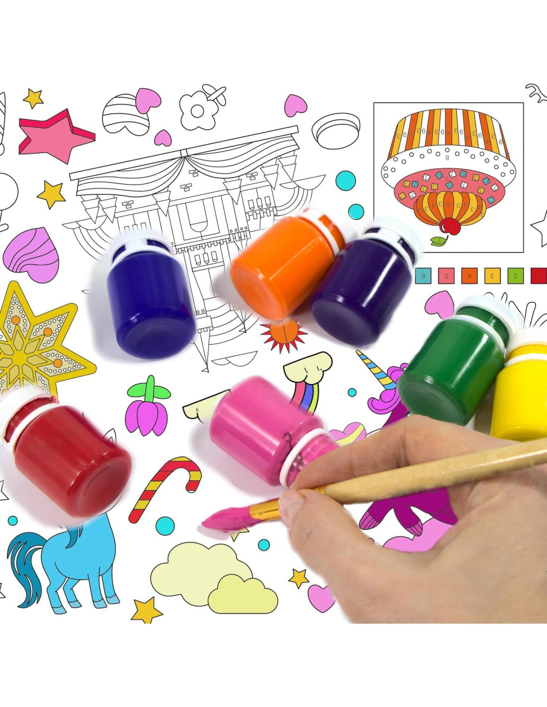 - Papel Premium de Alta Calidad: --Nuestro póster de actividad para colorear de unicornios está hecho de papel kraft blanco seguro y robusto con un recubrimiento premium. Su superficie resistente y grosor ideal previenen la penetración de marcadores de acuarela o crayones, lo que lo convierte en una opción ideal para actividades de fiesta de unicornios seguras y divertidas.