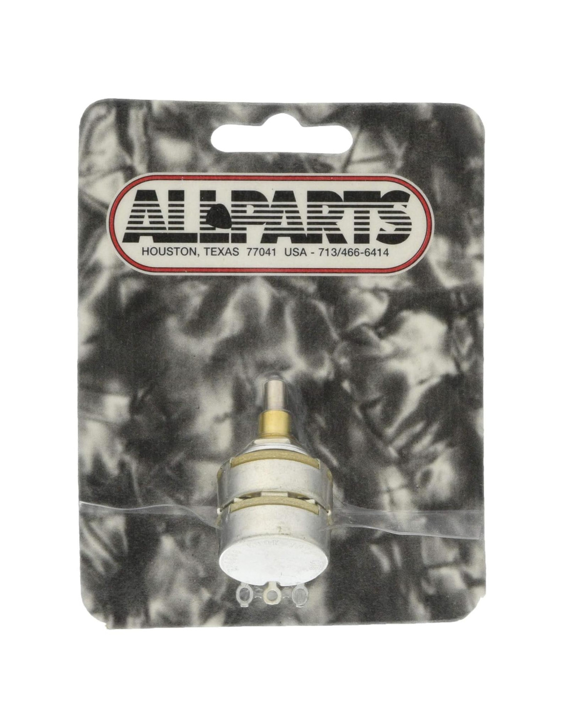 Potenciómetros de audio concéntricos apilados CTS, destinados para montaje en pickguard. La altura total del potenciómetro es de 1 y 15/16 pulgadas (4.92 cm). La distancia desde la parte inferior del potenciómetro hasta la parte inferior de la porción roscada es de 7/8 pulgadas (2.22 cm). Potenciómetro interno - 500K audio, diámetro 3/16 pulgadas (0.48 cm), 4.77 mm. Potenciómetro externo - 500k audio, diámetro 0.265 pulgadas (0.67 cm), 6.75 mm.
