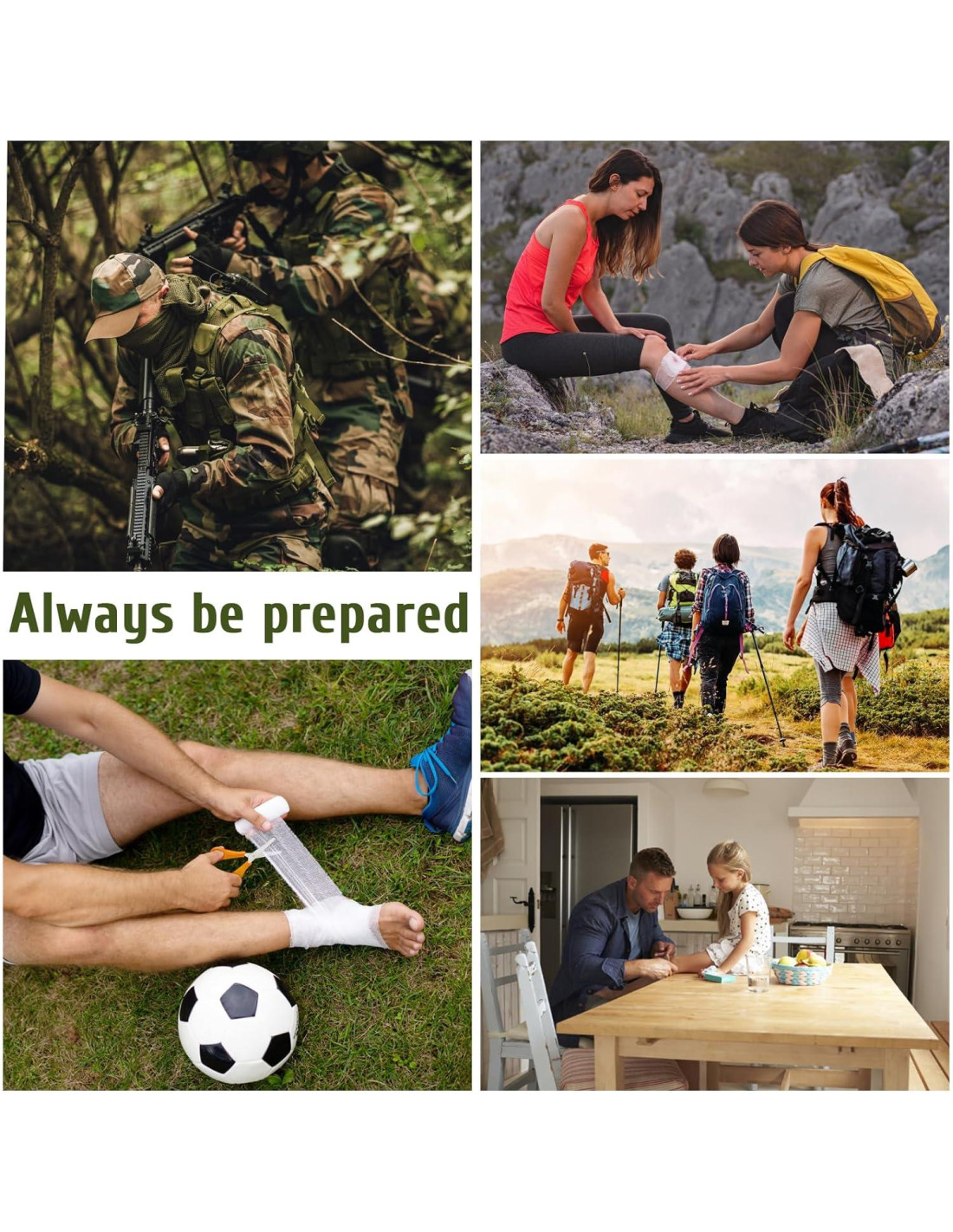 - [Un Imprescindible para la Mochila de Emergencia] El kit de primeros auxilios de supervivencia de emergencia ABPIR contiene 170 piezas de herramientas tácticas prácticas y profesionales de supervivencia y suministros de primeros auxilios esenciales, que pueden satisfacer sus diferentes necesidades de emergencia o médicas al aire libre. Es perfecto para acampar, hacer senderismo, cazar, mochilear, pescar, viajes por carretera y aventuras salvajes. Este kit de trauma táctico es un imprescindible para su mochila de emergencia.