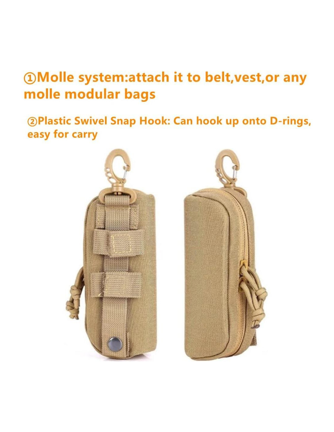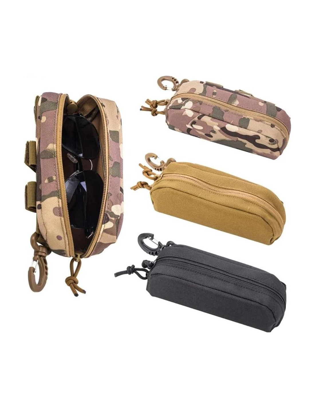Características: Fácil de atar al cinturón: Forma práctica de mantener las gafas seguras en cada situación Sistema Molle: se puede adjuntar al cinturón, correas de mochila, chalecos o cualquier bolsa modular molle Gancho de Plástico: Se puede enganchar en anillas en D, fácil de llevar Construcción semi-rígida con cierre de cremallera Forro interior de esponja elástica suave y a prueba de rayones Perfecto para deportes al aire libre Buena resistencia a la compresión Especificaciones: Color: Negro, Caqui, Camuflaje Material: Nylon 1000D Tamaño: 17 cm (6.69 pulgadas) x 8 cm (3.15 pulgadas) x 5 cm (1.97 pulgadas) Paquete Incluye: 1 x Funda de Gafas de Sol Militar