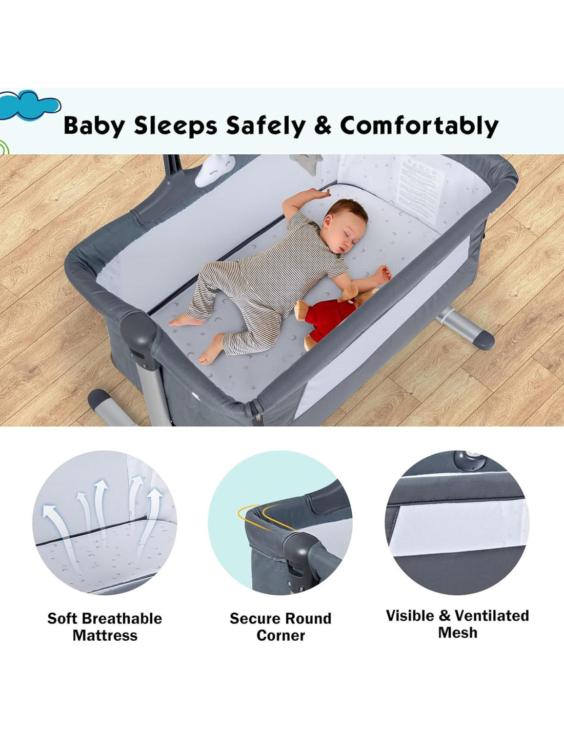 - [ Disfrute en la Hora de Dormir ]: La tela de piel de durazno con esponja gruesa y tela cepillada por fuera hacen que la cuna lateral sea acogedora y cómoda. Un soporte para juguetes y una caja de música mantienen a su bebé entretenido. Mientras tanto, los juguetes ayudan con el agarre y la caja de música con luz y vibración calma al bebé para dormir y mejora la capacidad cognitiva.