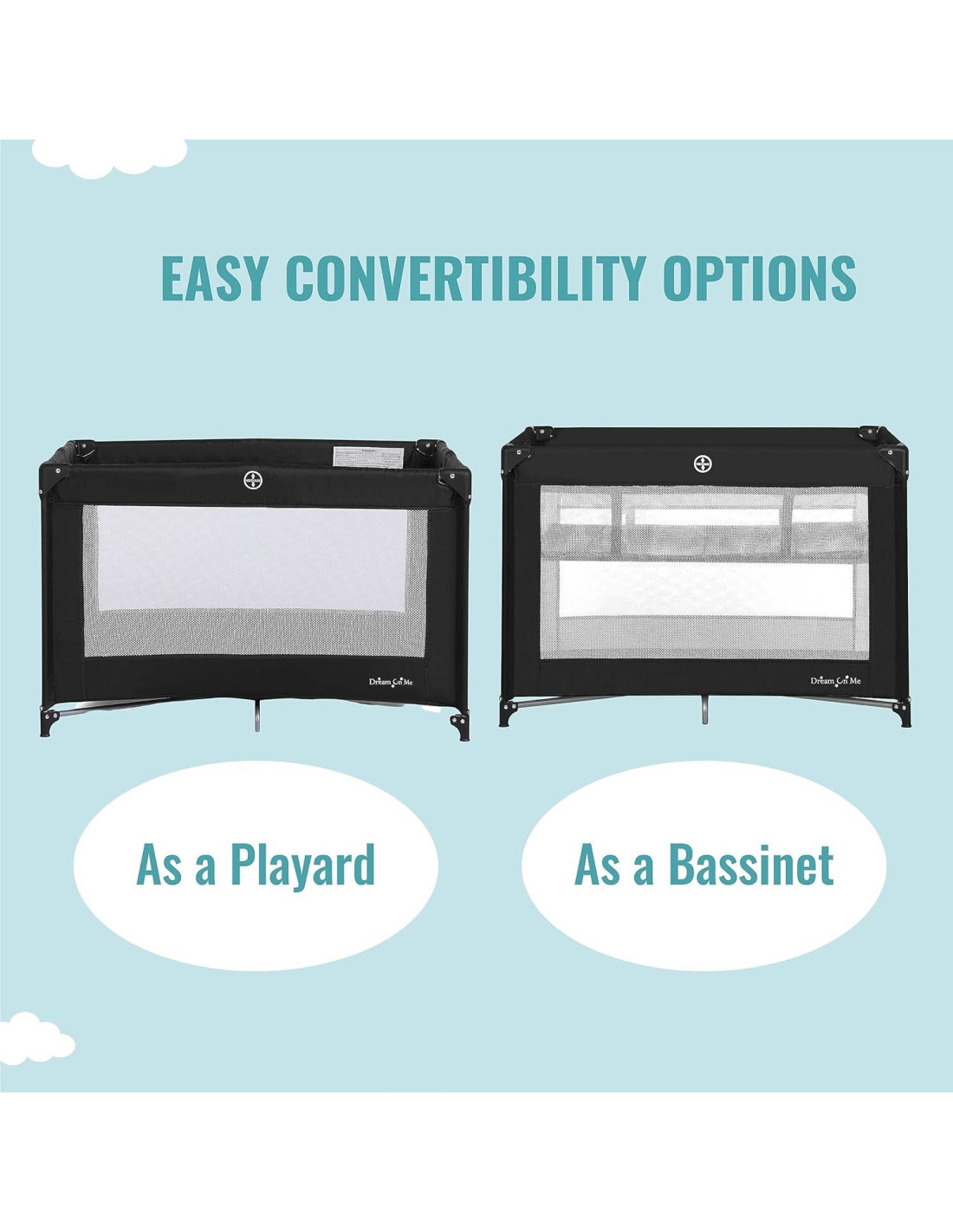 - ACABADOS COLORIDOS: El Dream On Me Zazzy Portable Playard con Cuna viene en 4 acabados divertidos y juguetones: Negro, Gris, Menta y Rosa.