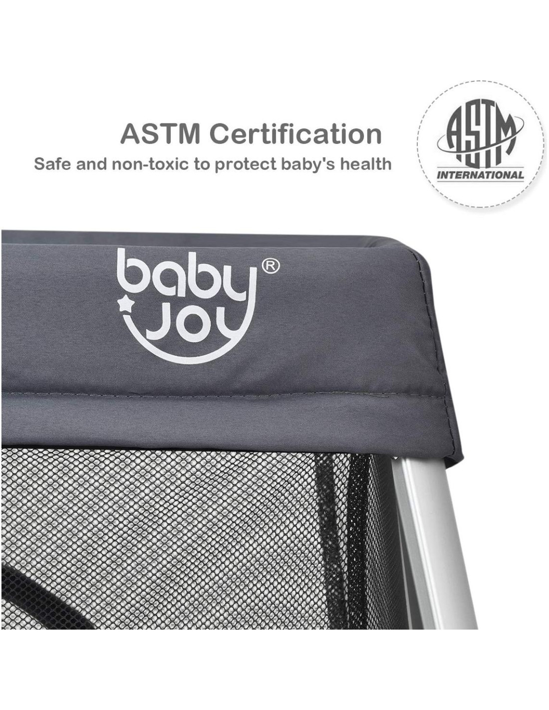 BABY JOY se preocupa mucho más por los bebés. Estamos construidos con la filosofía de ofrecer una guía útil para que los padres sean testigos de los hitos clave del bebé. Durante estos años, BABY JOY ha sido una fuente confiable de equipos de seguridad infantil de alta calidad fabricados con precisión, diseñados para situaciones de la vida real. Estamos aquí para ofrecerte un valor inigualable, un diseño contemporáneo y, lo más importante, productos seguros que deseas dar a tu bebé lo mejor. 96.5 cm x 66 cm se adapta a la mayoría de las cunas de tamaño completo estándar y camas para niños pequeños. Pack and Play y Cuna Lateral para Bebés. La correa de seguridad adjunta se puede conectar a tu cama para aumentar la estabilidad. BABY JOY Pack and Play todo en uno. Con diseño de puerta con cremallera, se puede abrir fácilmente para ayudar al bebé a entrar y salir más cómodamente. El diseño ligero y el tamaño compacto facilitan su transporte.