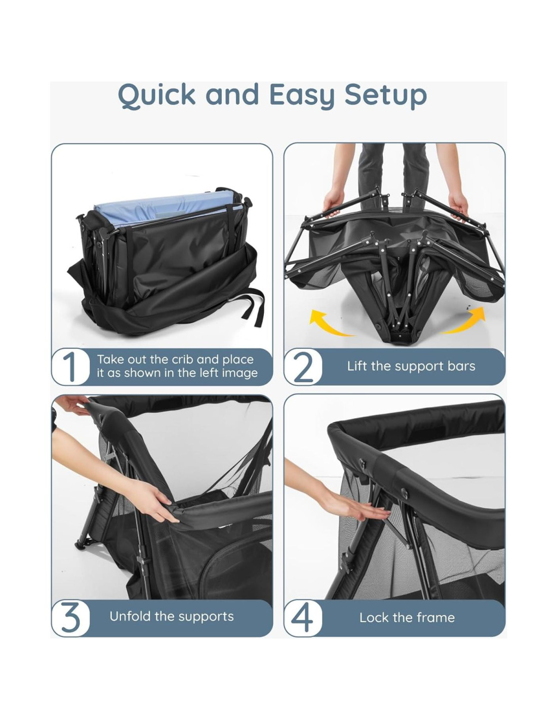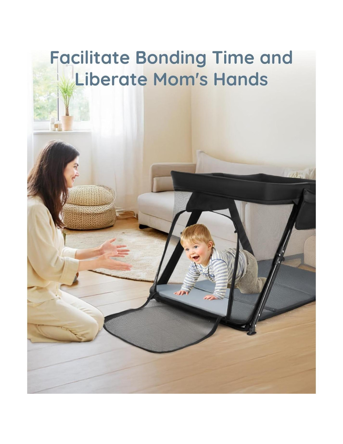 - Cuna de viaje portátil 2-en-1: 1. Cama para bebés: El colchón extraíble en el medio proporciona un ambiente de descanso cómodo y seguro para tu bebé. 2. Parque infantil: Descomprime el zipper lateral para transformarlo en un parque infantil donde tu bebé puede gatear dentro y fuera.