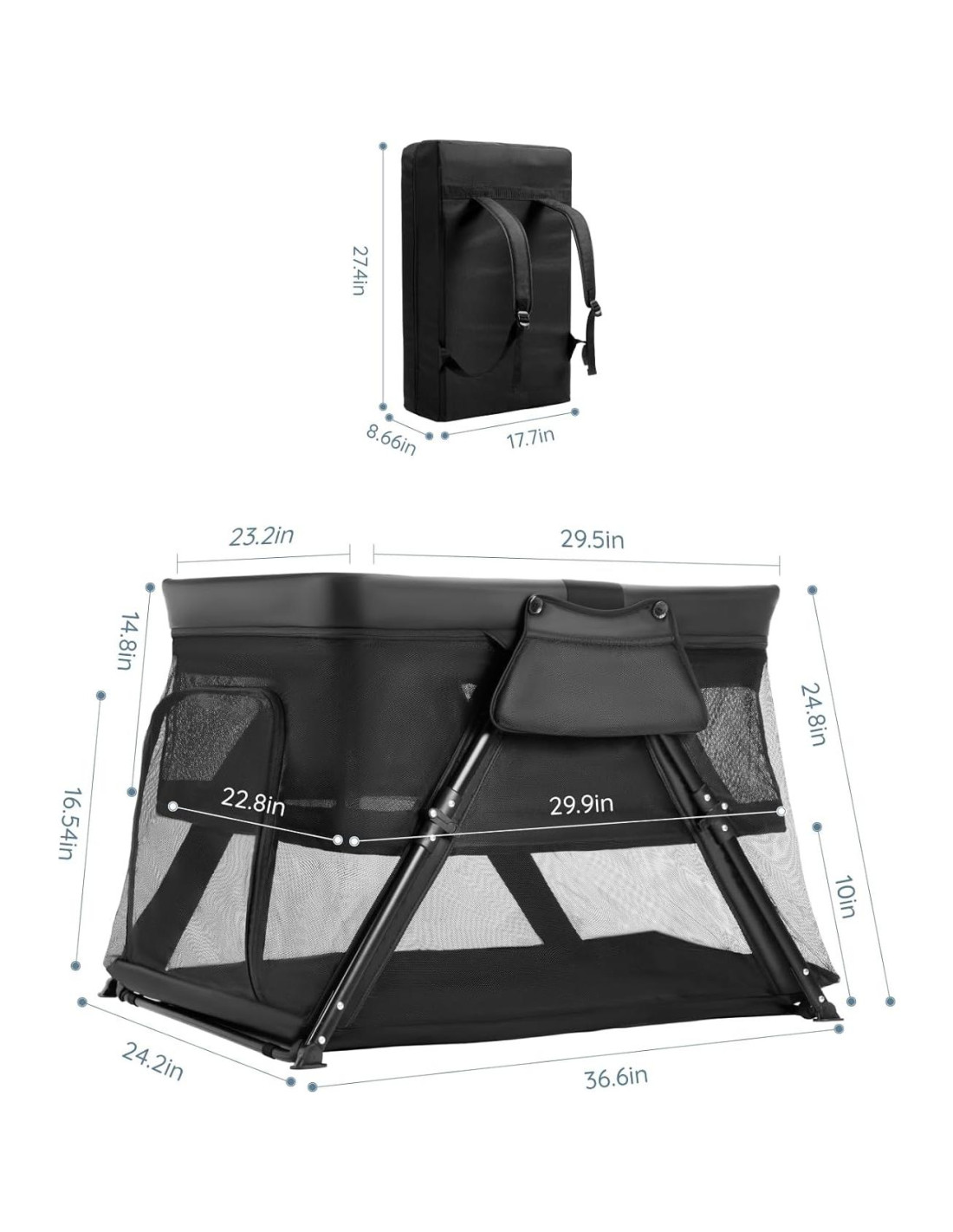 - Un esencial de viaje para padres: La cuna portátil para bebés no requiere ensamblaje y es fácil de instalar y empacar rápidamente. Solo 16.5 libras (7.48 kg) y viene con una mochila para un fácil transporte. Ya sea que viajes en coche, tren o avión, la cuna portátil garantiza una experiencia sin preocupaciones.