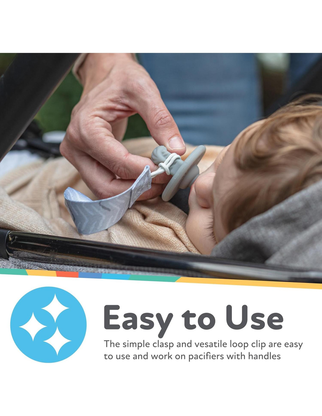 - FÁCIL DE USAR: Compatible con cualquier chupete que tenga un mango; simplemente sujeta el cierre de bucle alrededor del mango del chupete y clipéalo en cualquier lugar conveniente
