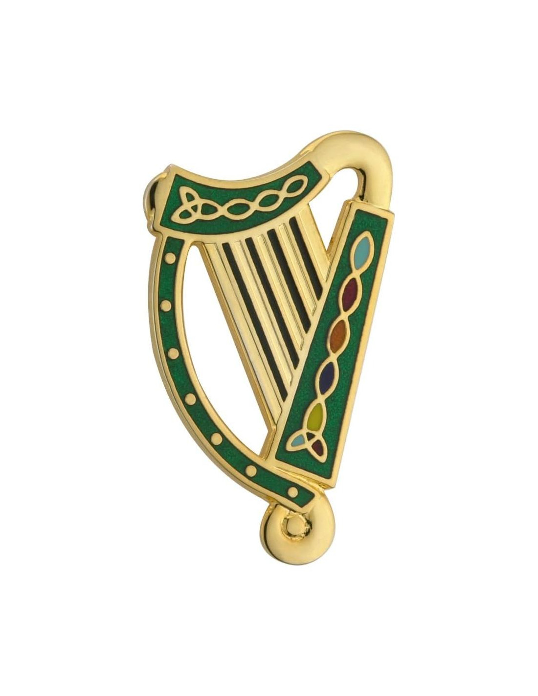 - El impresionante broche de arpa dorada de Galway presenta el símbolo atemporal del arpa que ocupa un lugar especial en el folclore y la tradición irlandesa. Esta joyería representa el orgullo nacional irlandés, la identidad y la música.